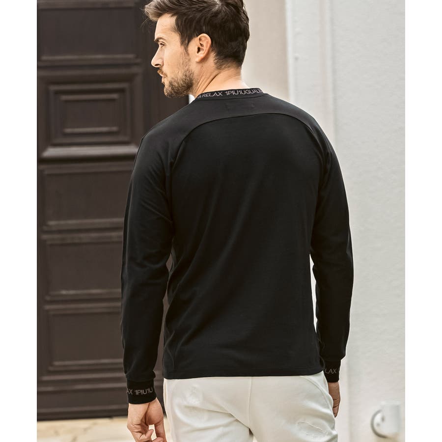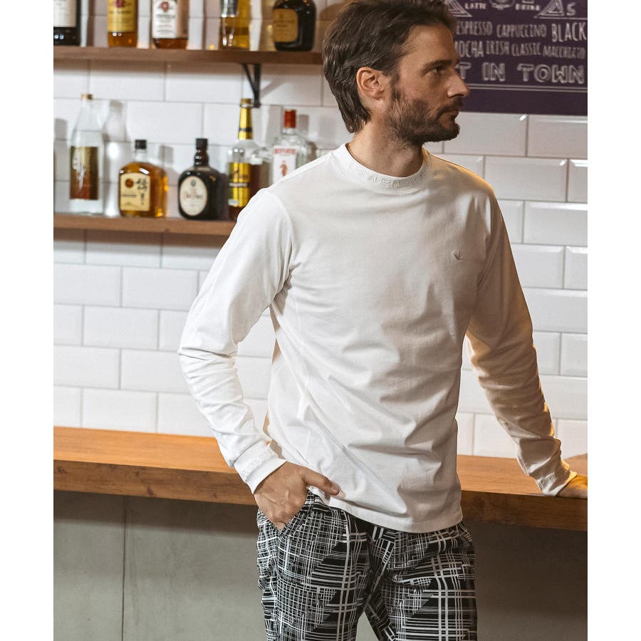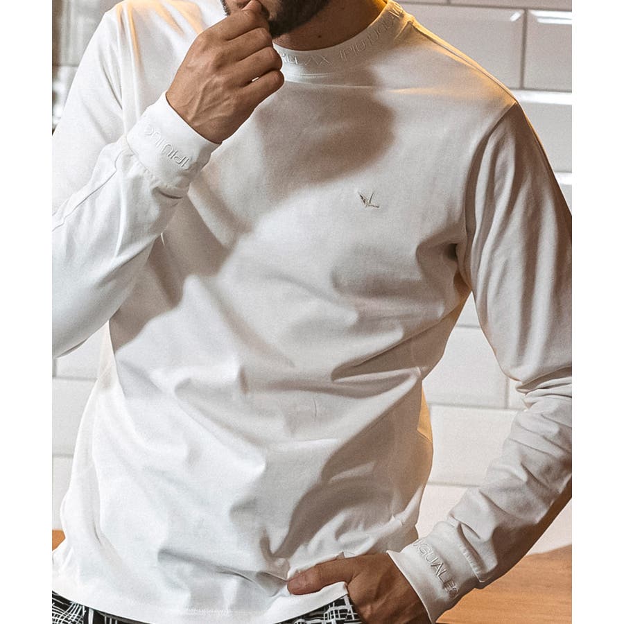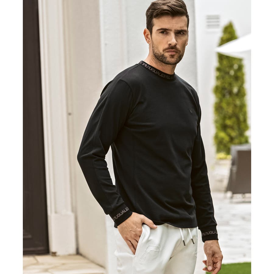 ネックと袖口にブランドロゴを印象的に使用した長袖カットソー。