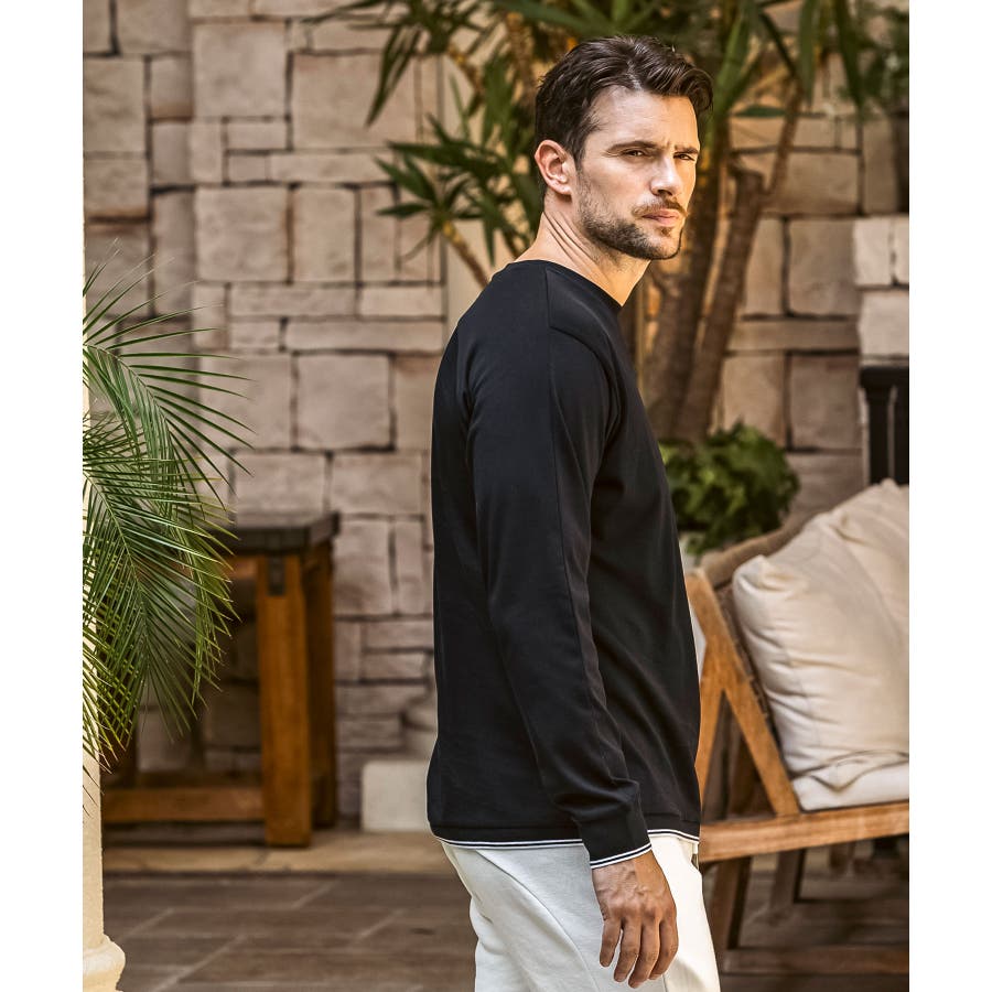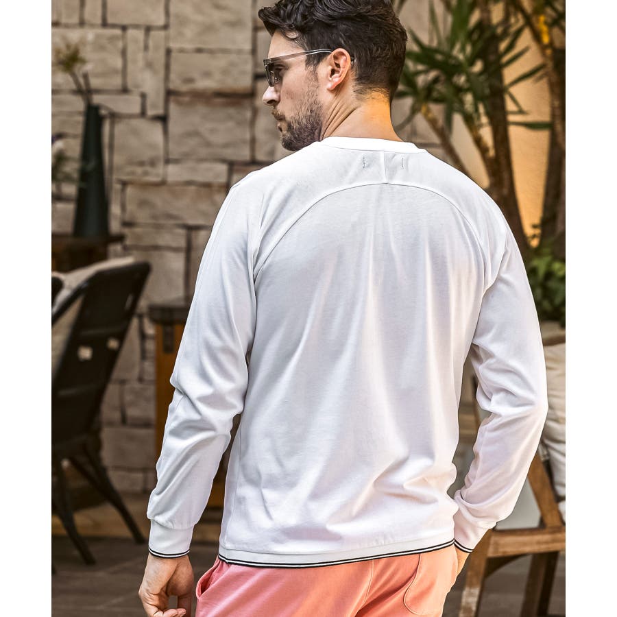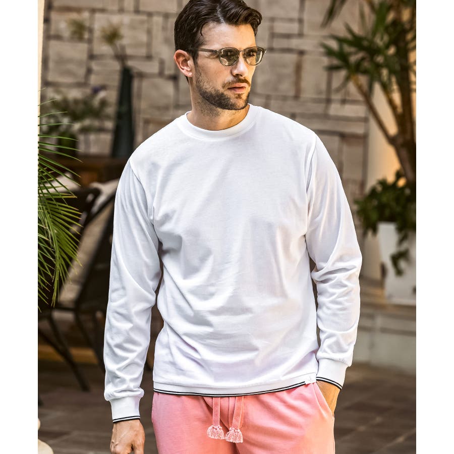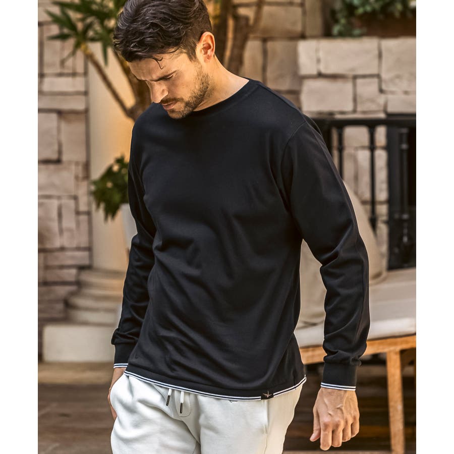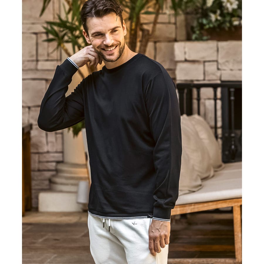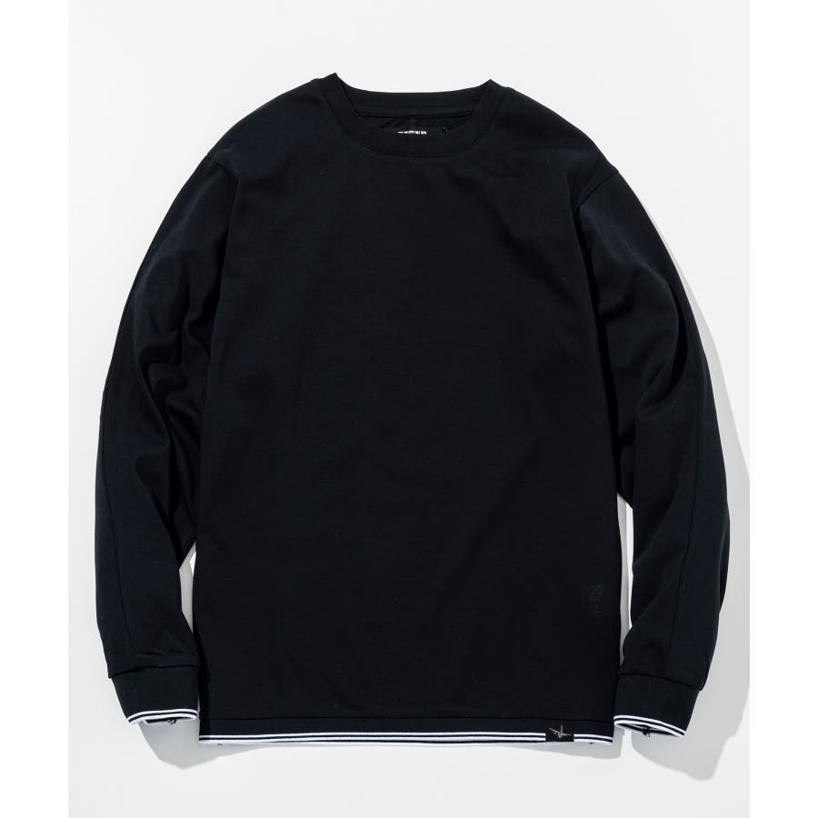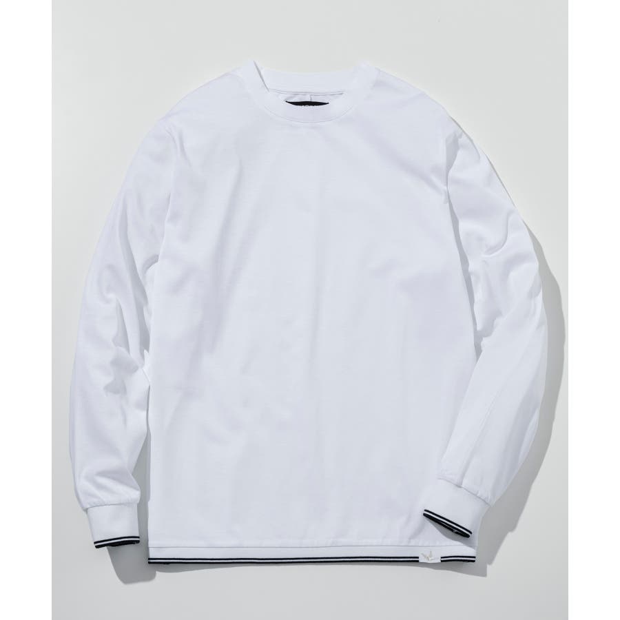 袖口と裾にラインデザインを施した長袖カットソー。