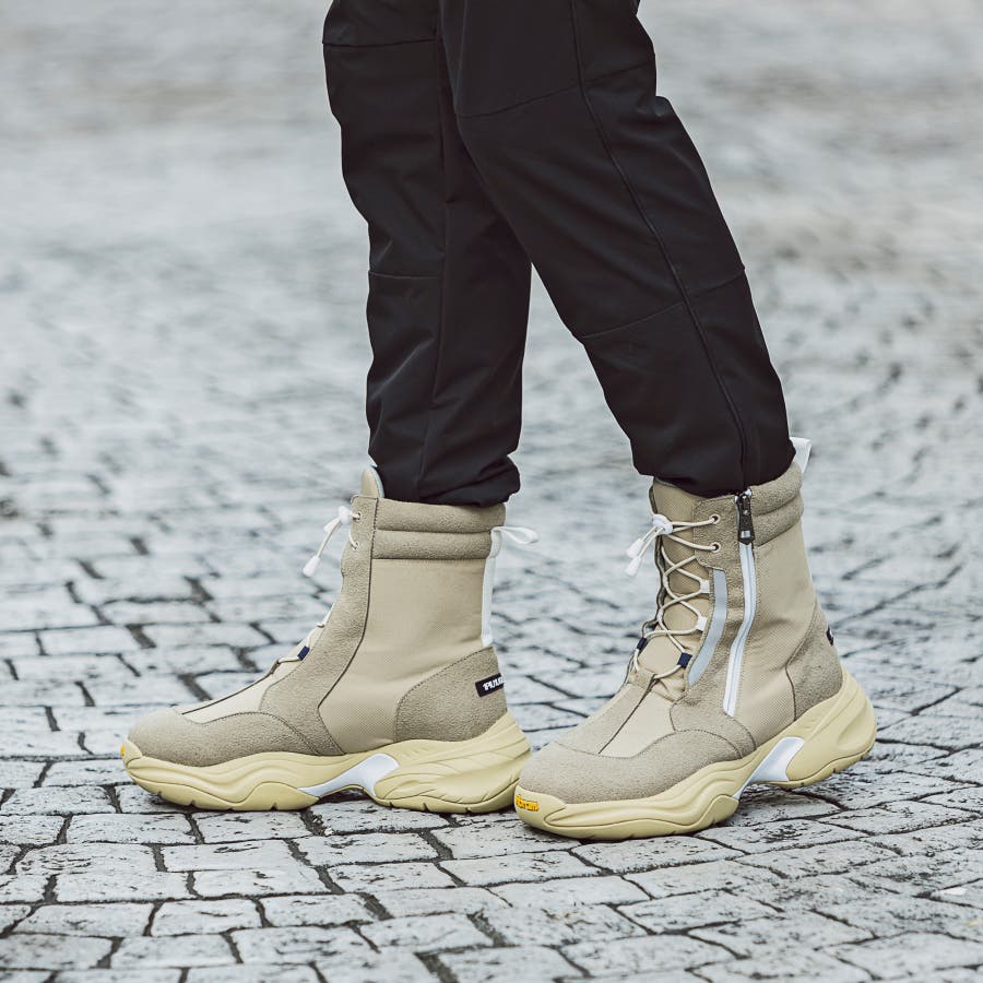 近年ハイブランドに見られる、スタイリッシュなアッパーデザインとボリュームのあるソールというアンバランスな組み合わせを、1PIU1UGUALE3 RELAXのテイストに落とし込みました。