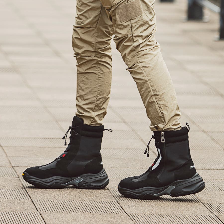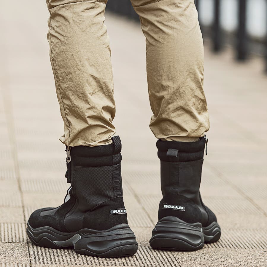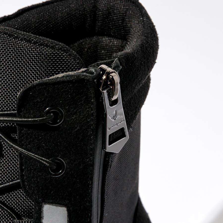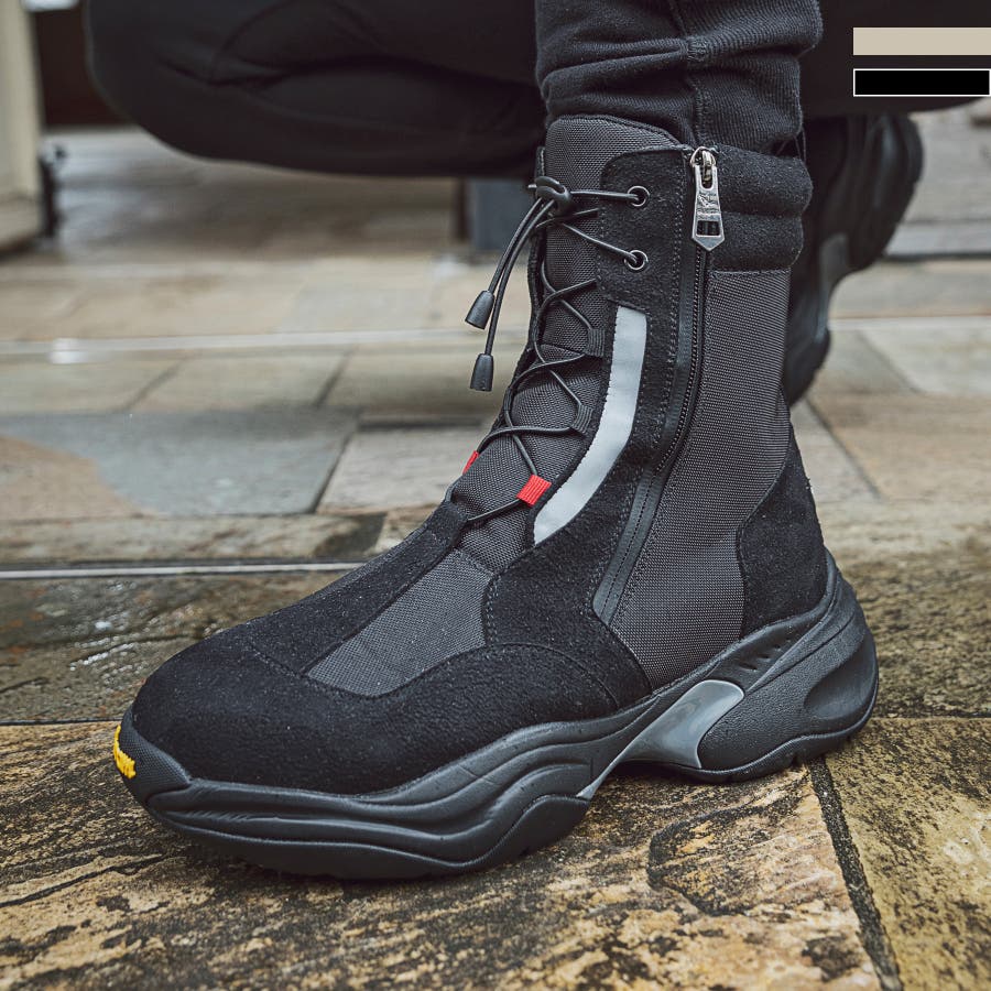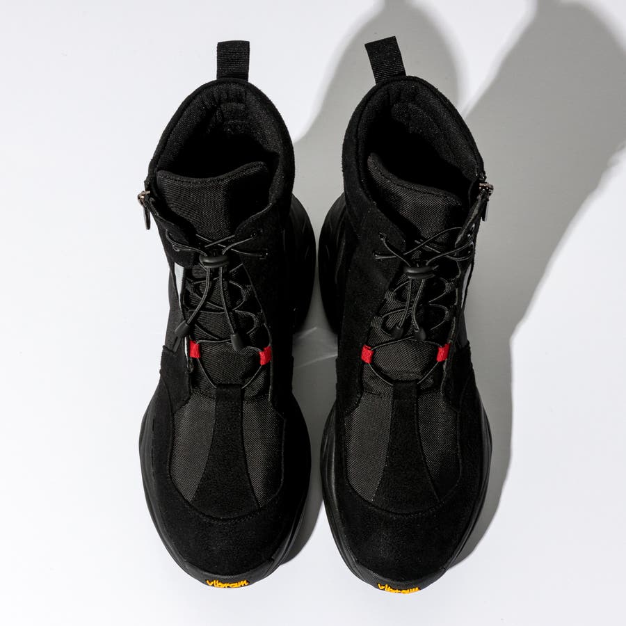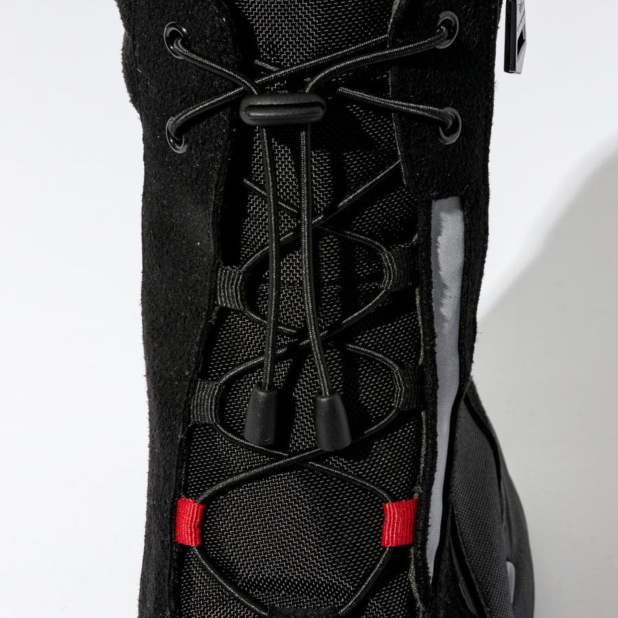 サイドファスナーでの着脱は勿論のこと、シューレースをゴムにすることによりファスナーを必要としない機能性も保持。