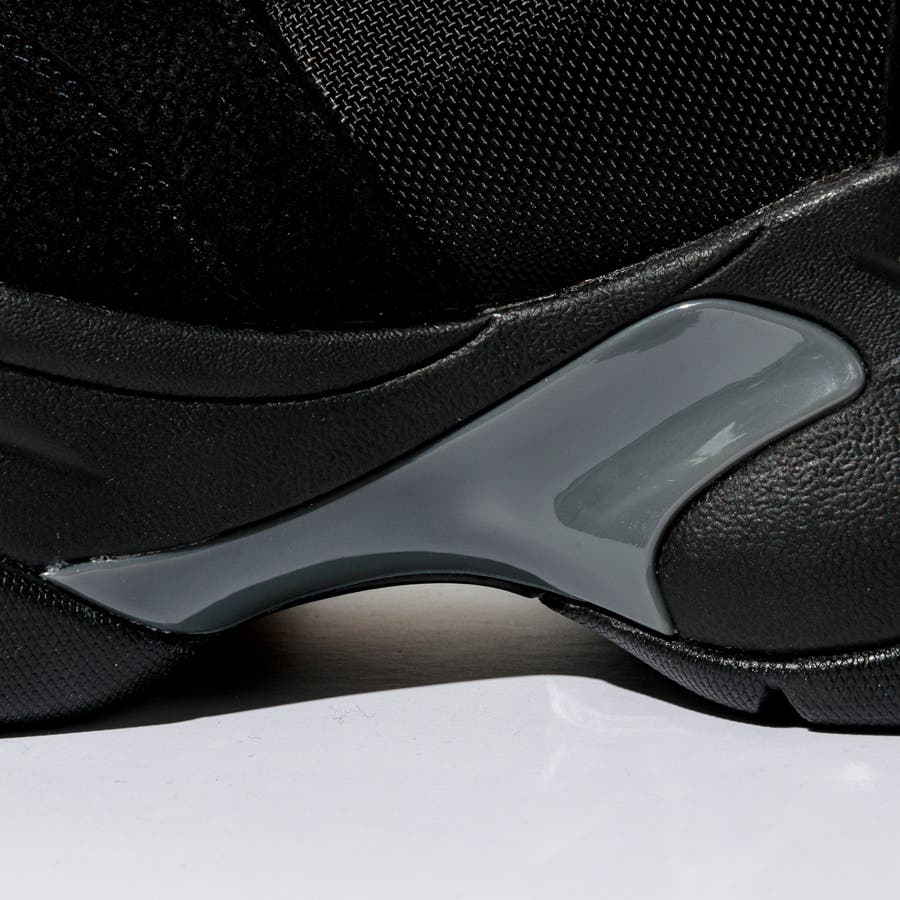 底面の曲線的なラバーがグリップ力を高め、EVA(合成樹脂)の厚みのあるミッドソールが高いクッション性を発揮。