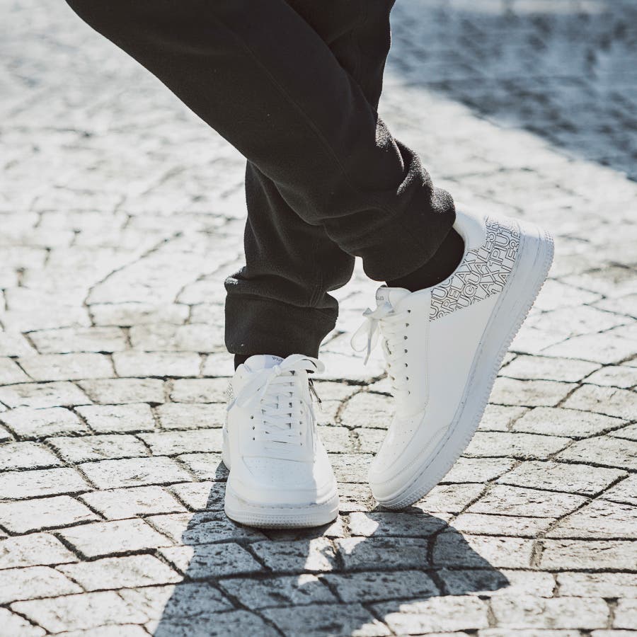 スニーカー側面に同ブランドロゴをあしらった個性派デザイン。