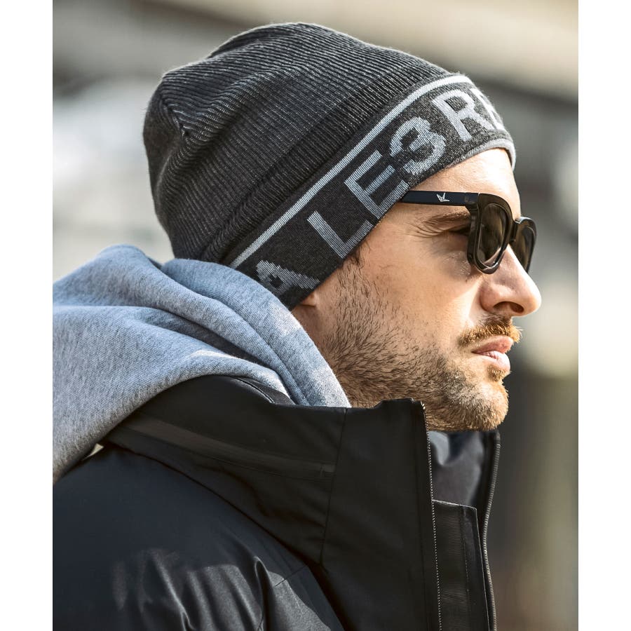 ブランドロゴをグラデーションでデザインしたニット帽。