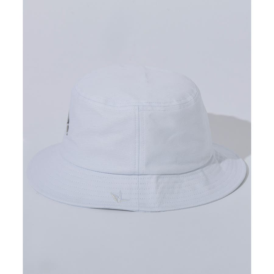 フロントにシルバープレートでブランドロゴを差し込んだバケットハット。
