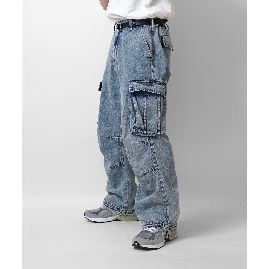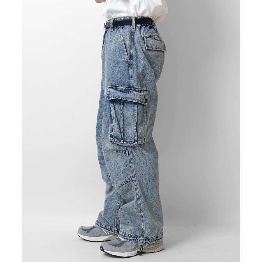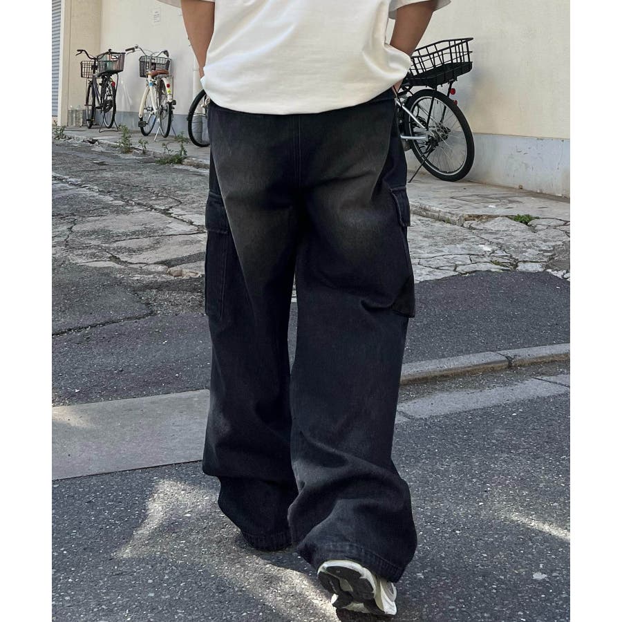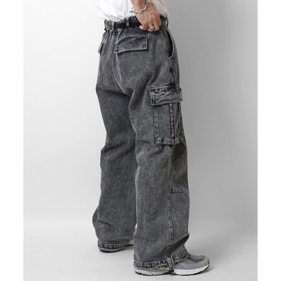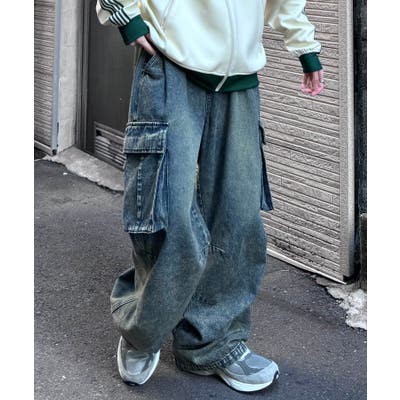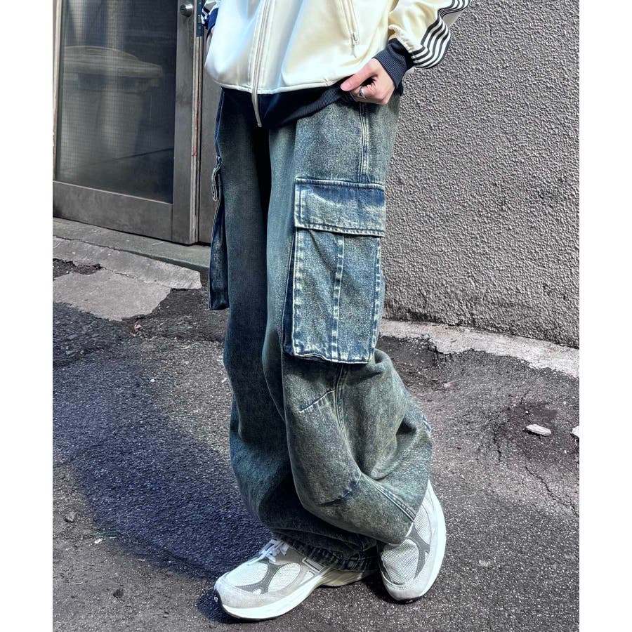 ケミカルウォッシュ特有の風合いがヴィンテージ感を演出するカーゴパンツ。