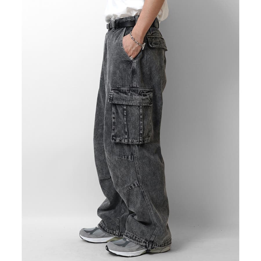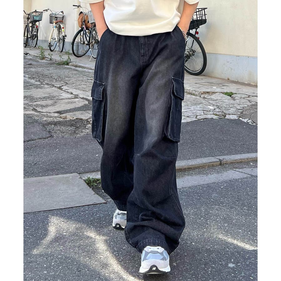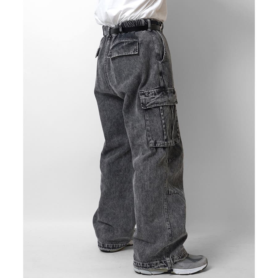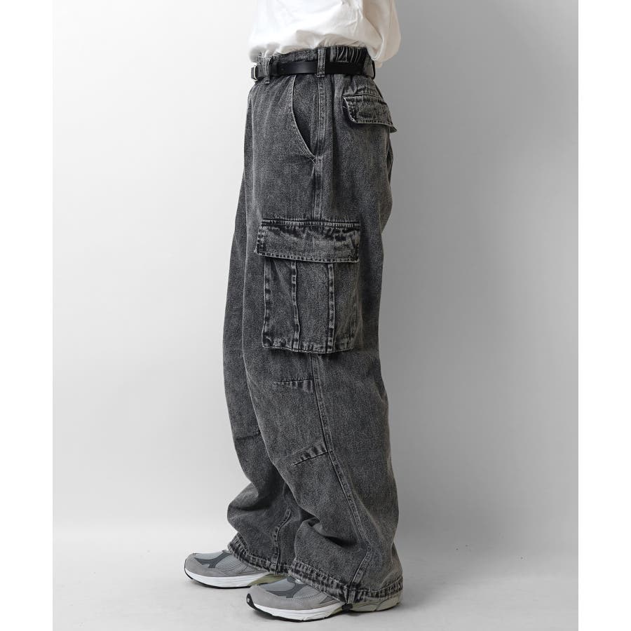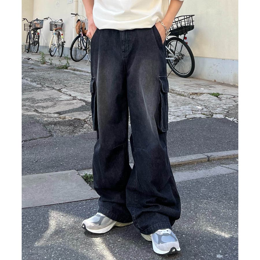 ケミカルウォッシュ特有の風合いがヴィンテージ感を演出するカーゴパンツ。