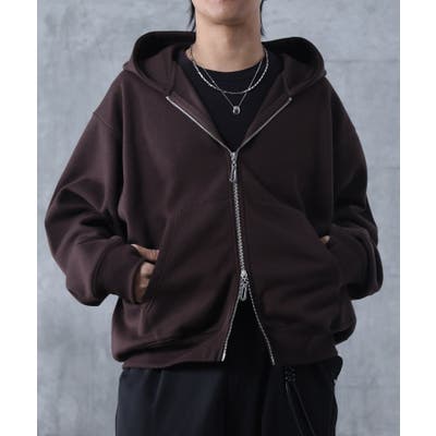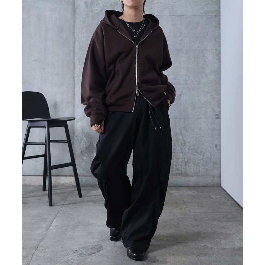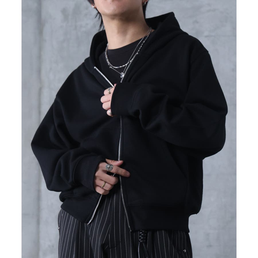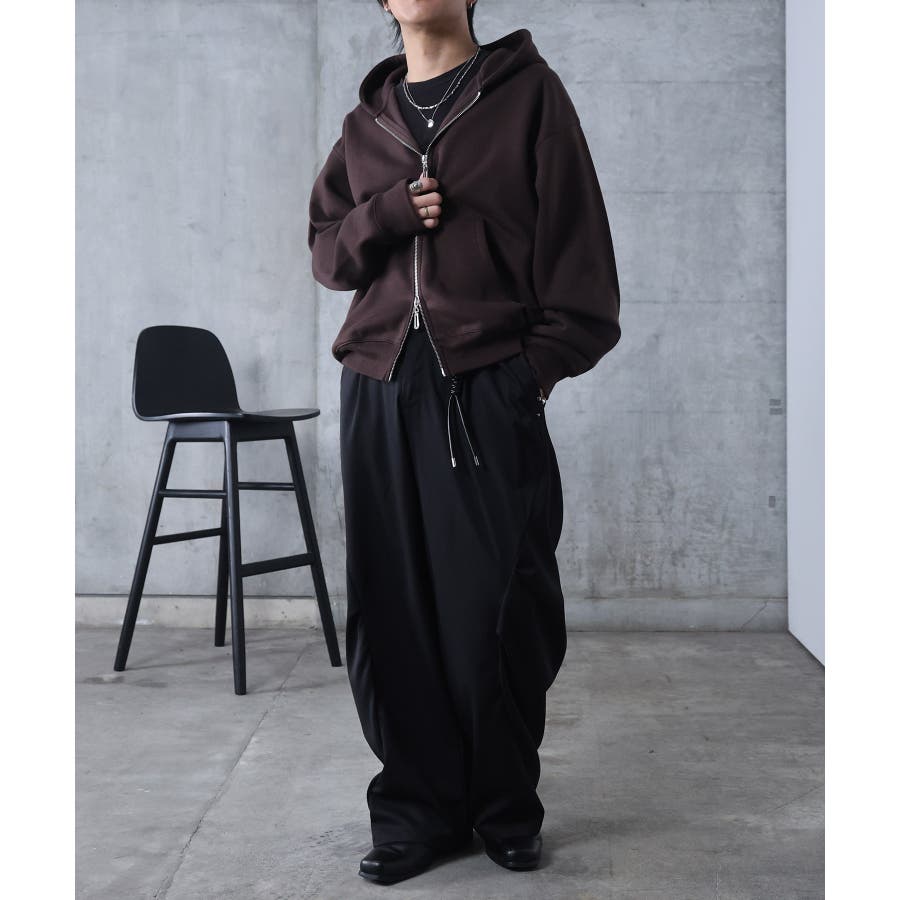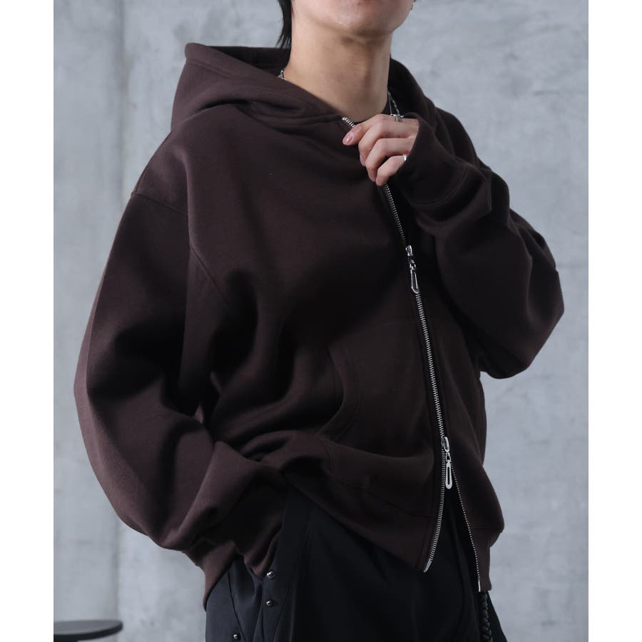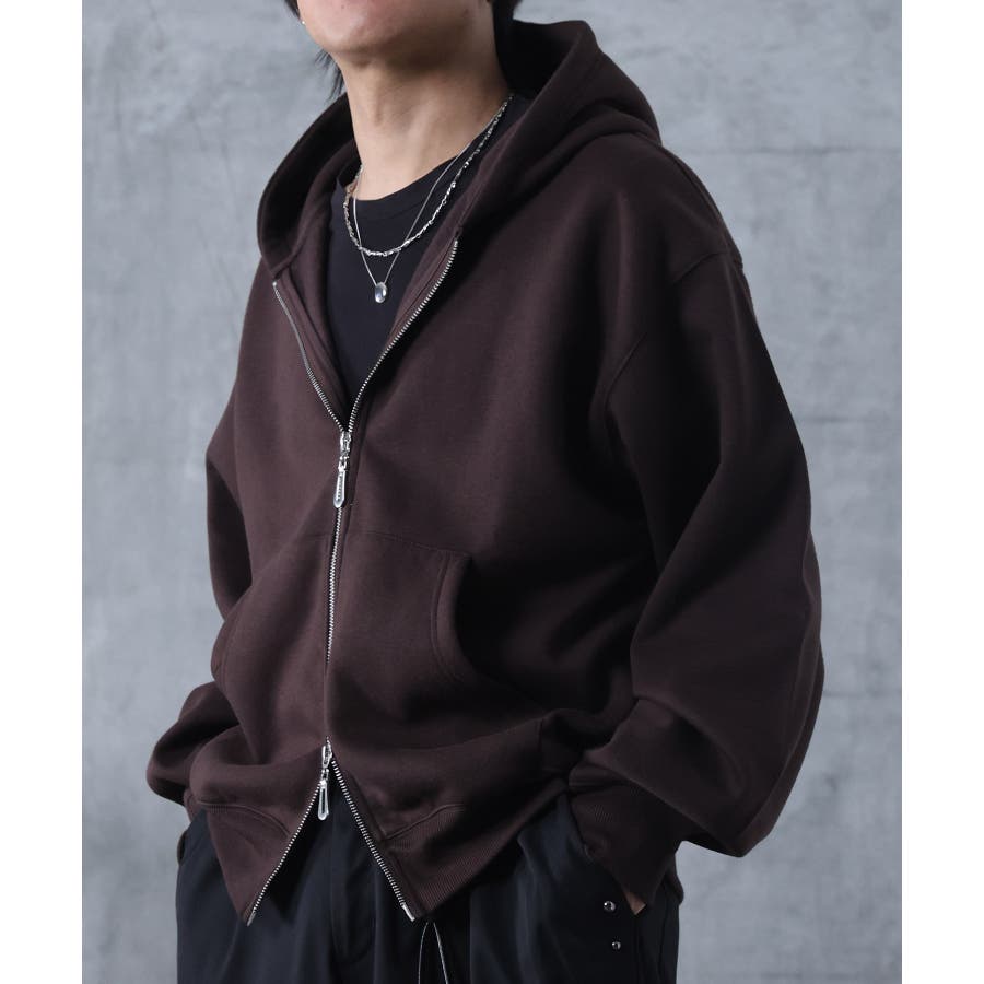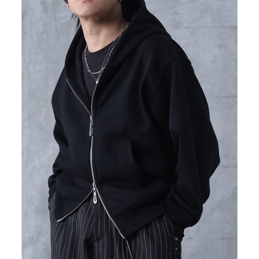 ルーズなシルエットをサムホールで引き締め、スタイルアップも着こなしも自由自在。モードストリートな万能ダブルジップパーカー。