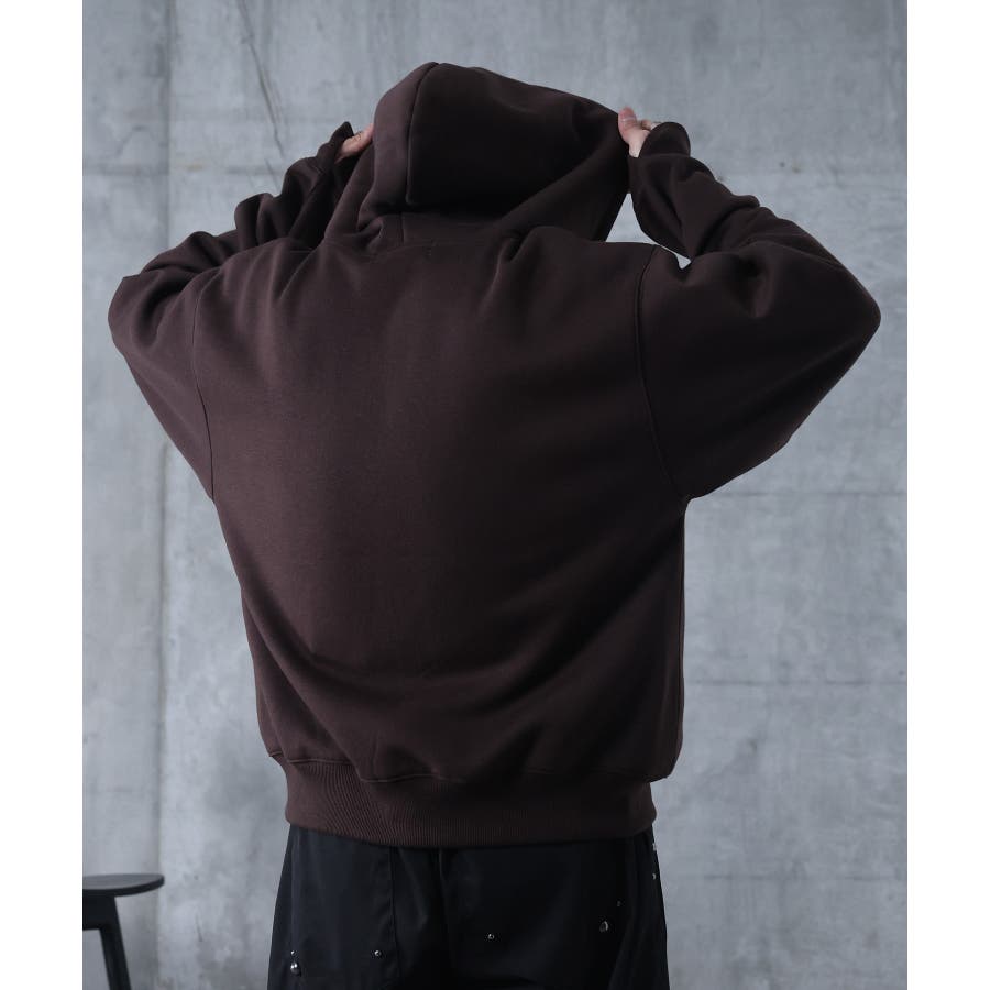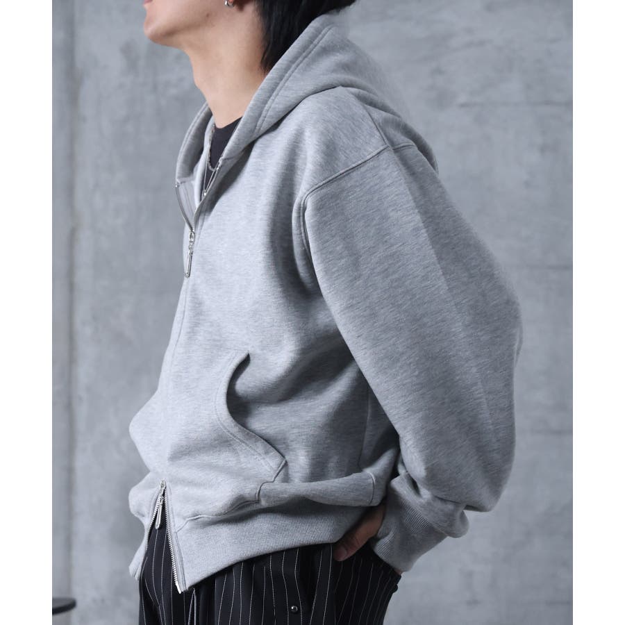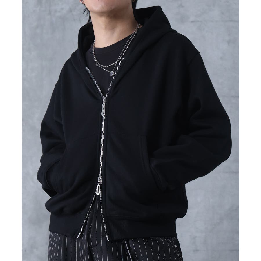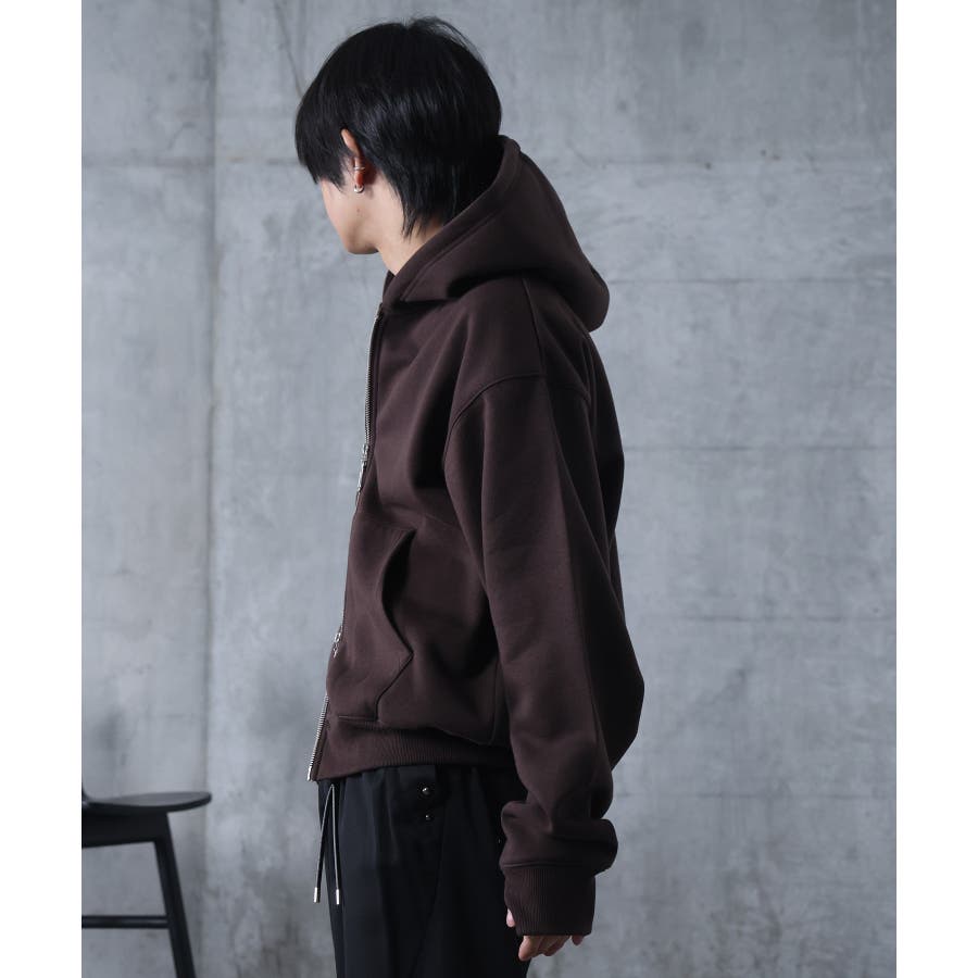 トレンドのショート丈かつワイドな身幅で仕上げたヘビーウェイトのジップフーディ(ジップパーカー)。