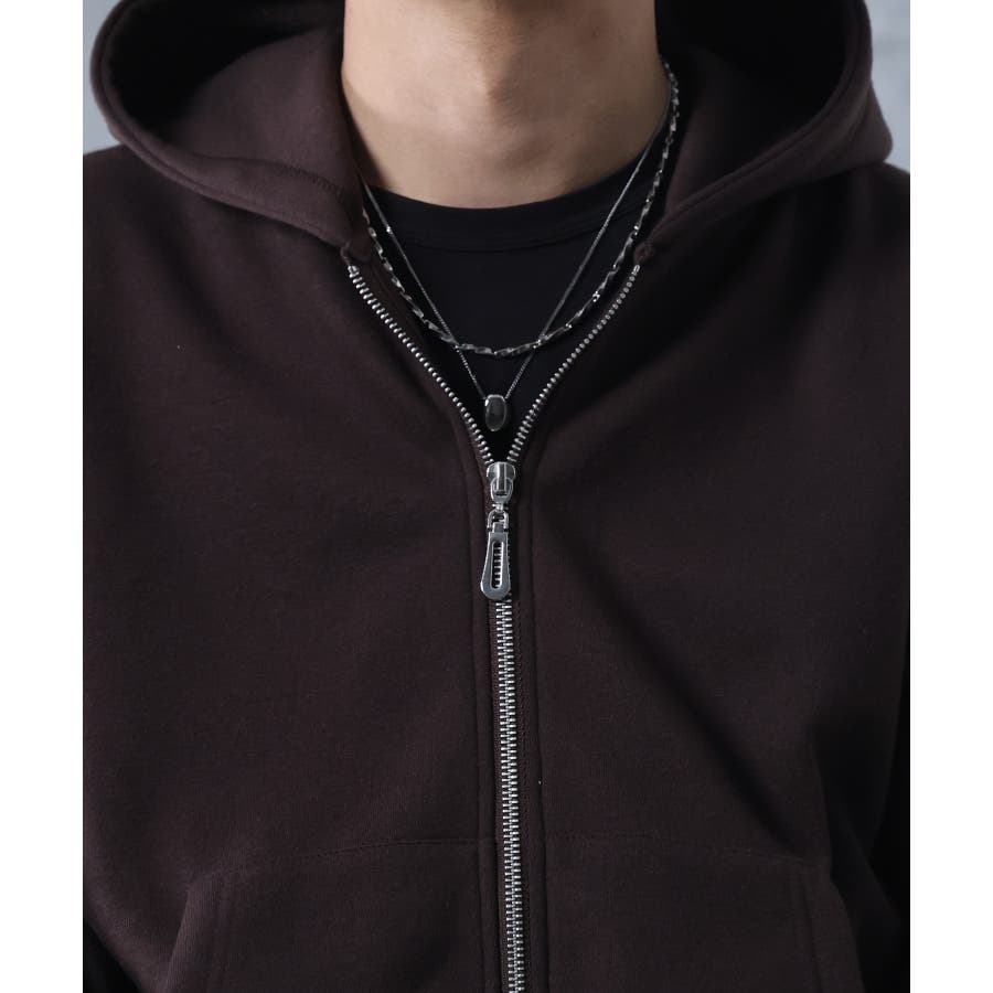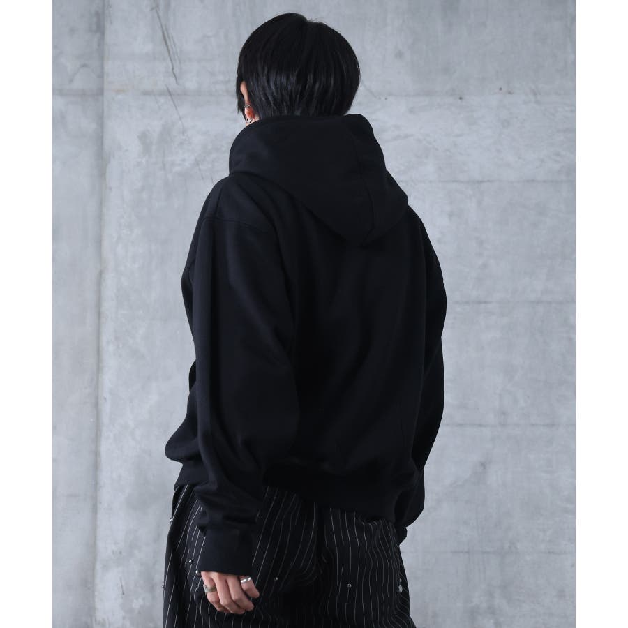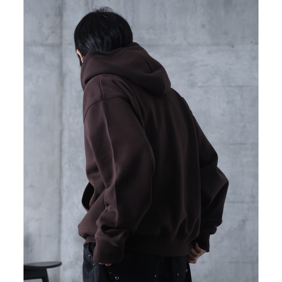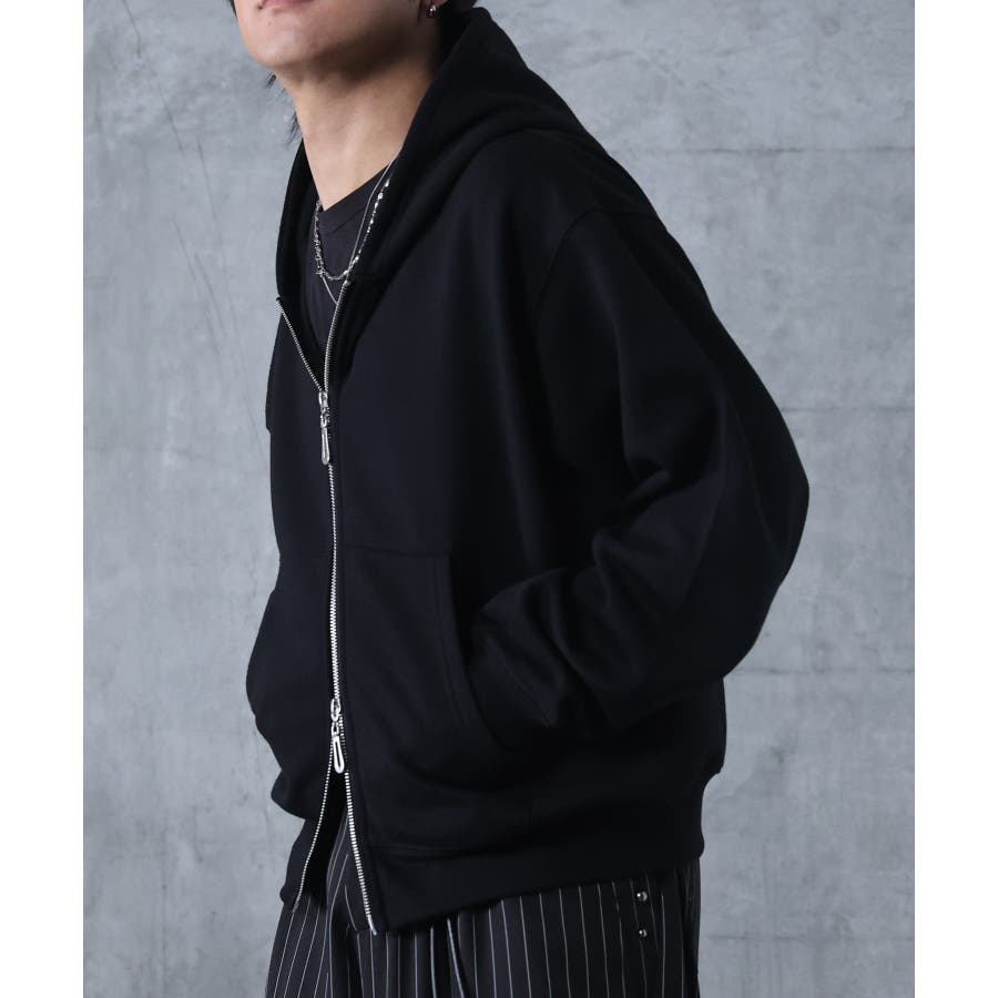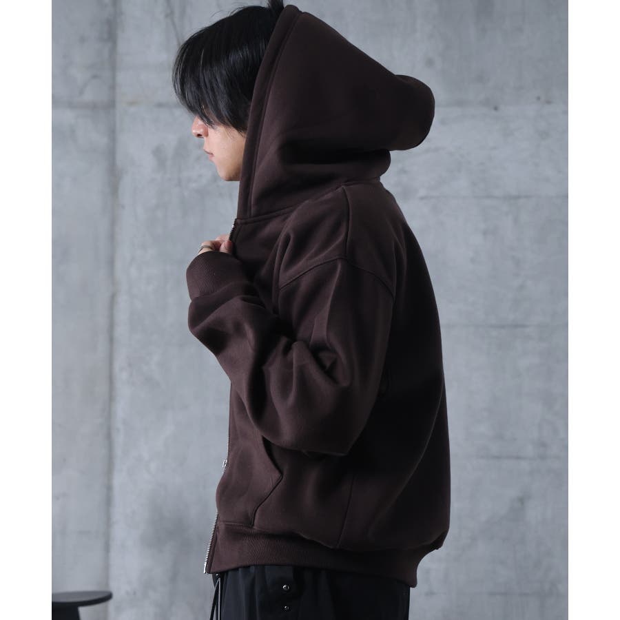 トレンドのショート丈かつワイドな身幅で仕上げたヘビーウェイトのジップフーディ(ジップパーカー)。
