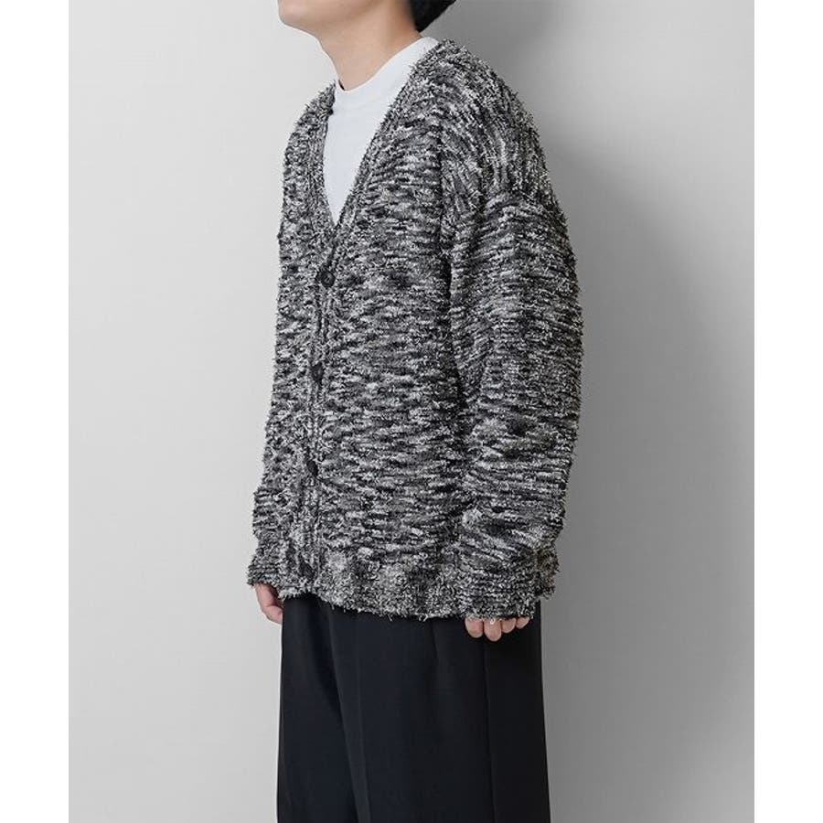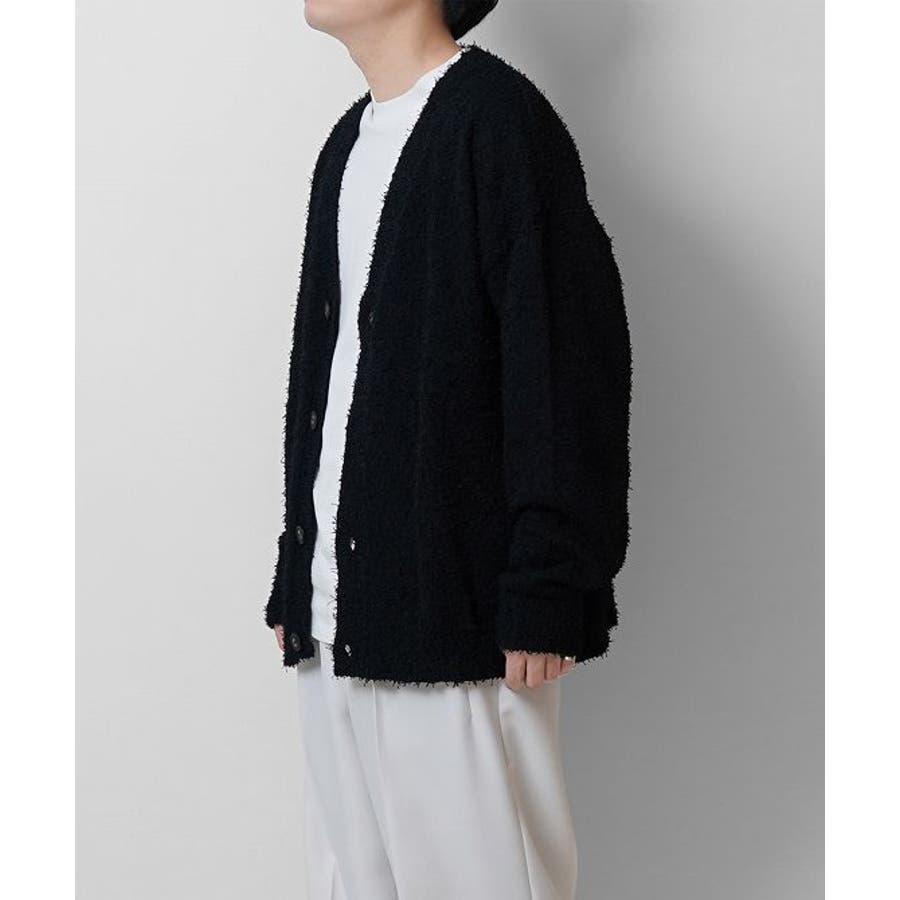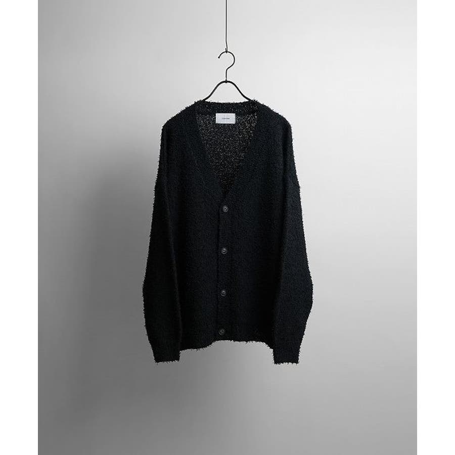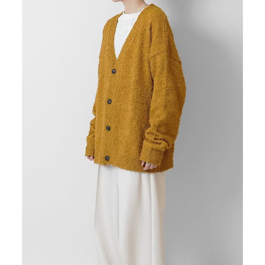 毛足がねじれた加工を施されたツイストブークレカーディガン。
