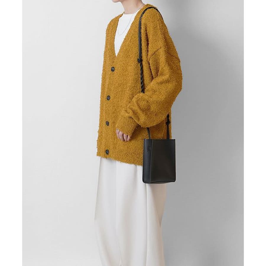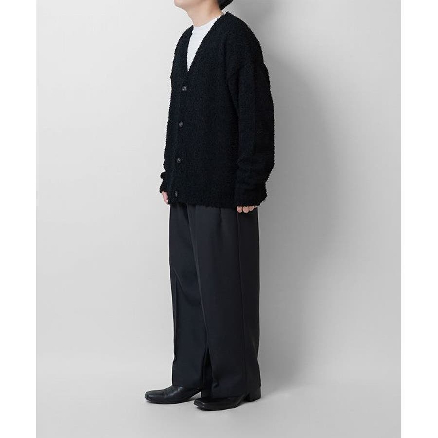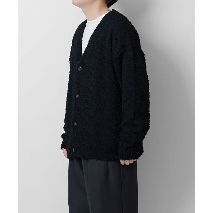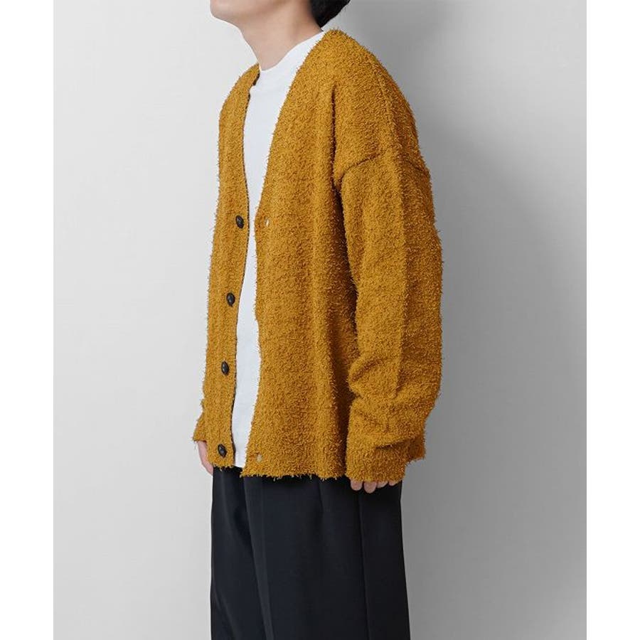 毛足がねじれた加工を施されたツイストブークレカーディガン。