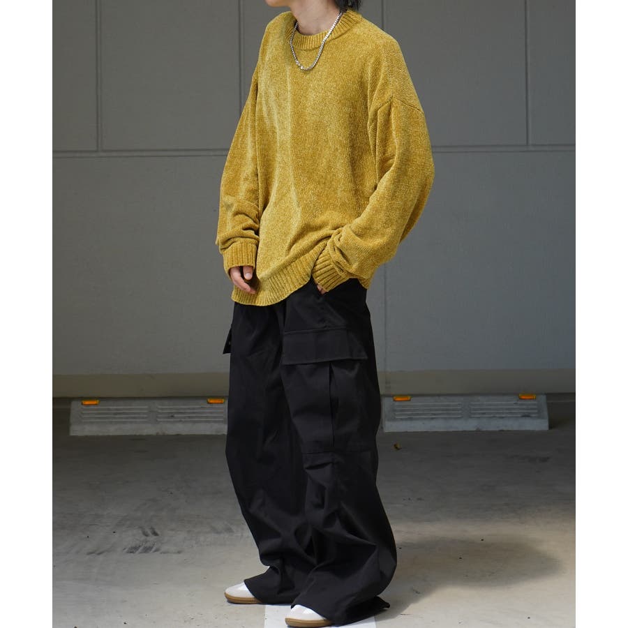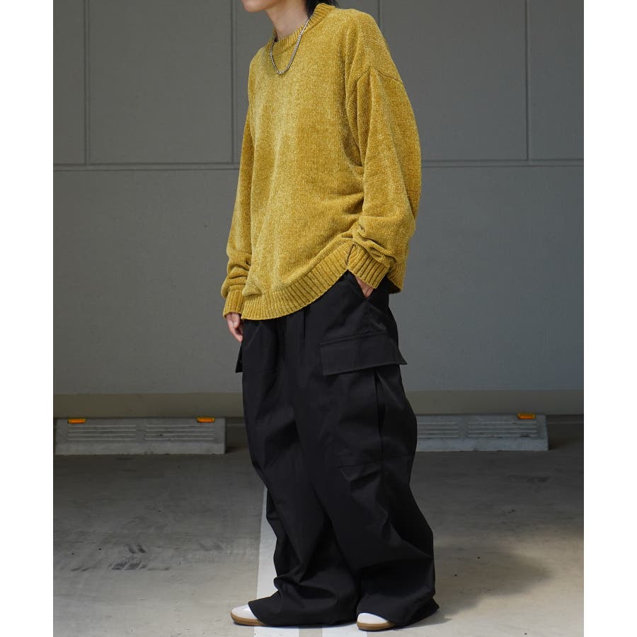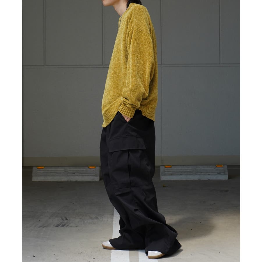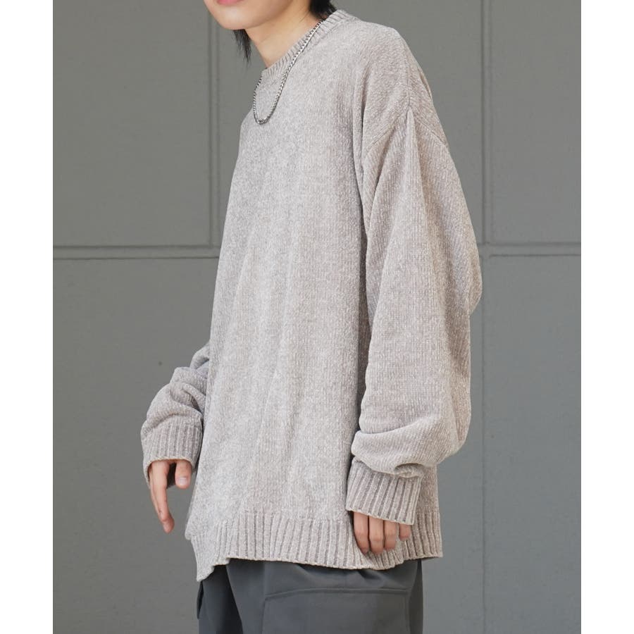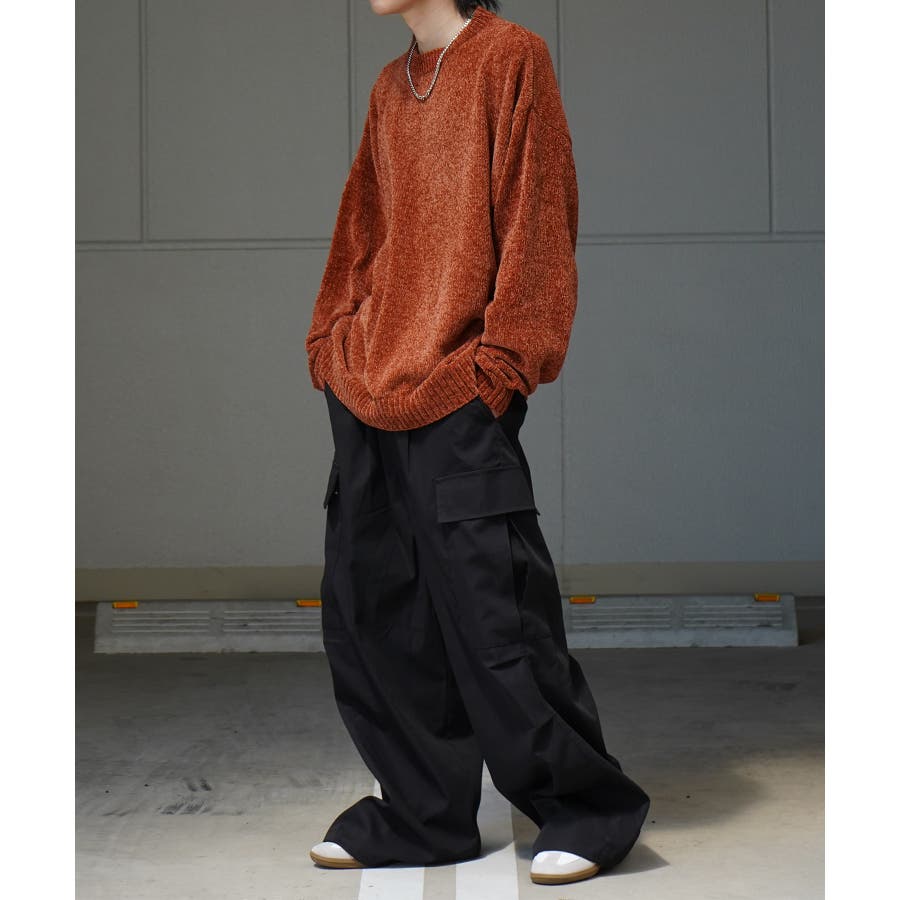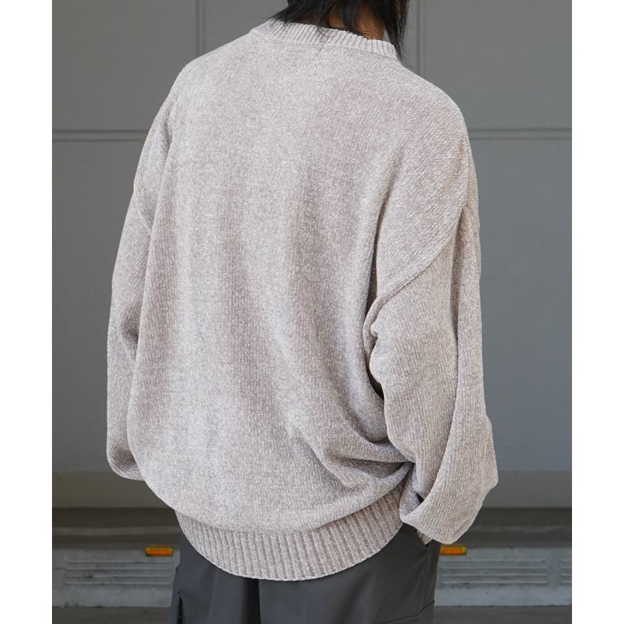 腕部分のデザインが「Loose Hi-neck KNIT」と異なり袖幅から袖リブ幅にかけて幅を狭め、ビッグシルエットが表現できるようなハリ感も残したため、手首付近に生地が溜まり程よいボリューム感を演出するデザインに。