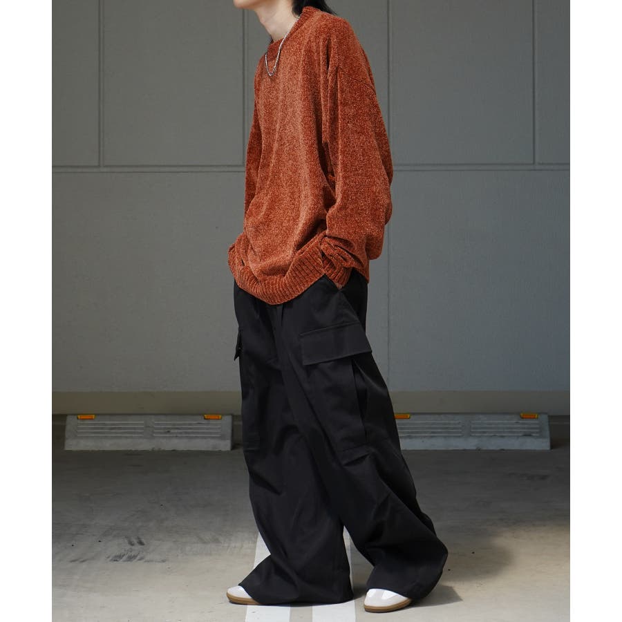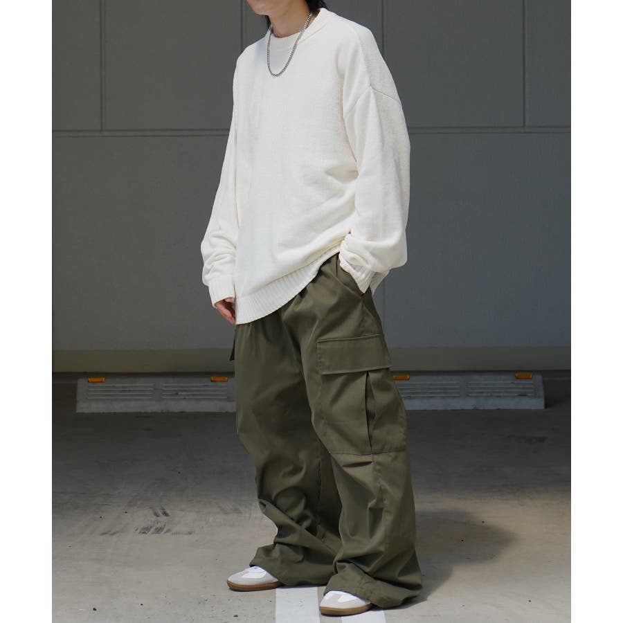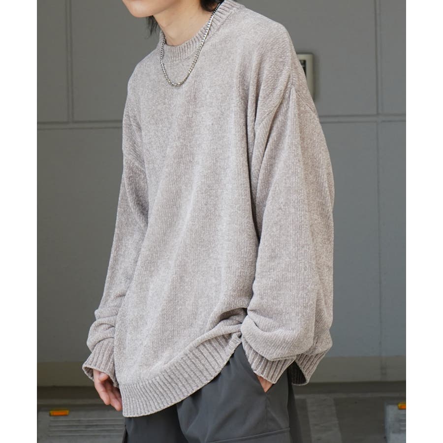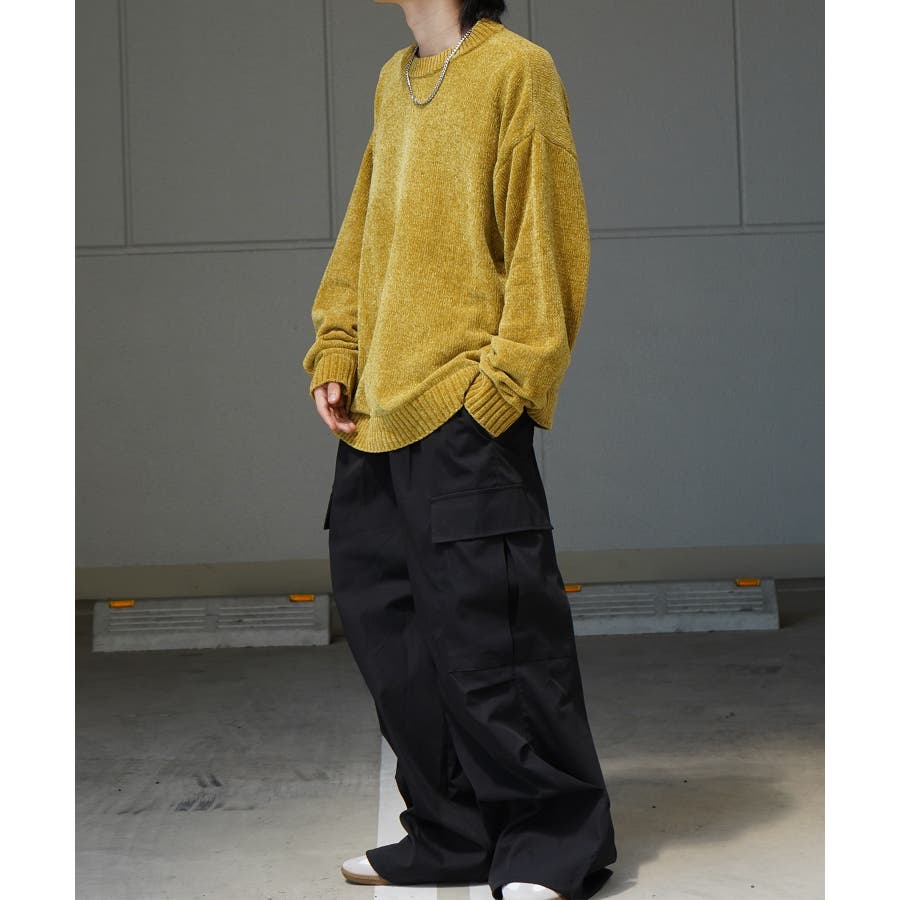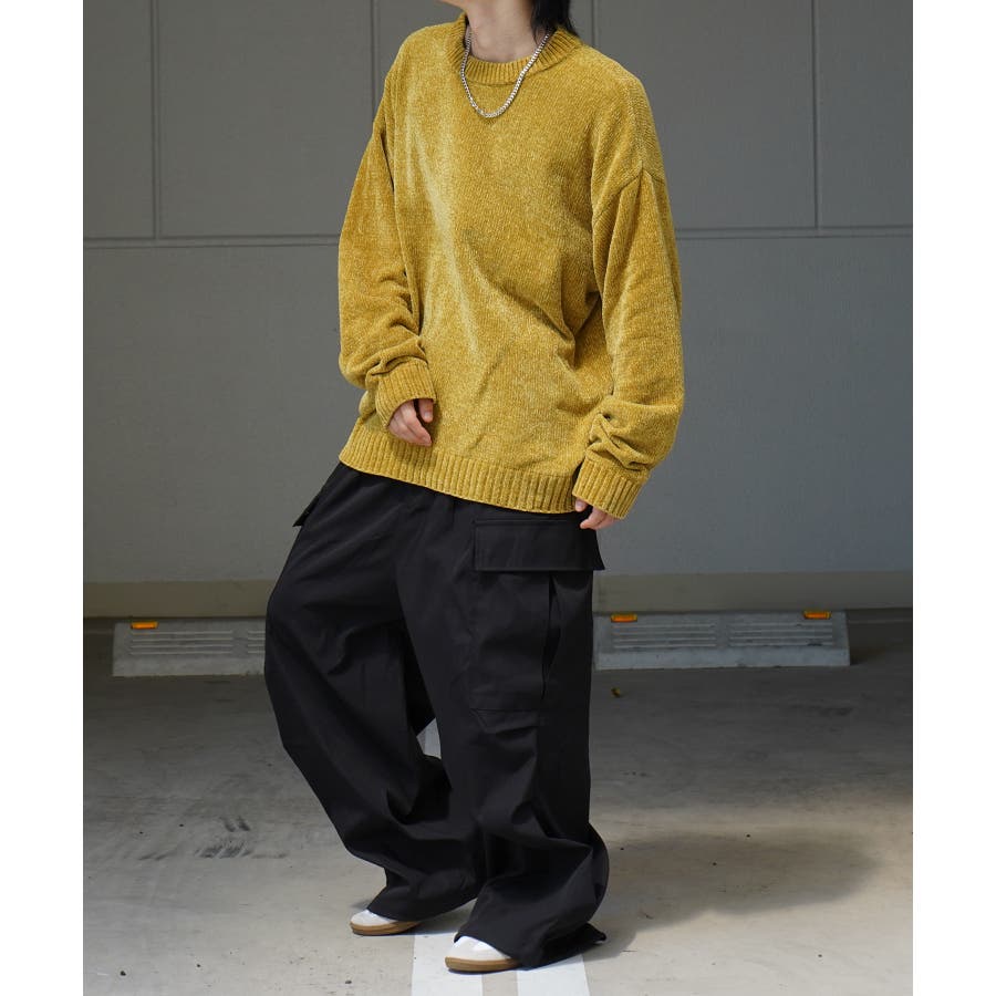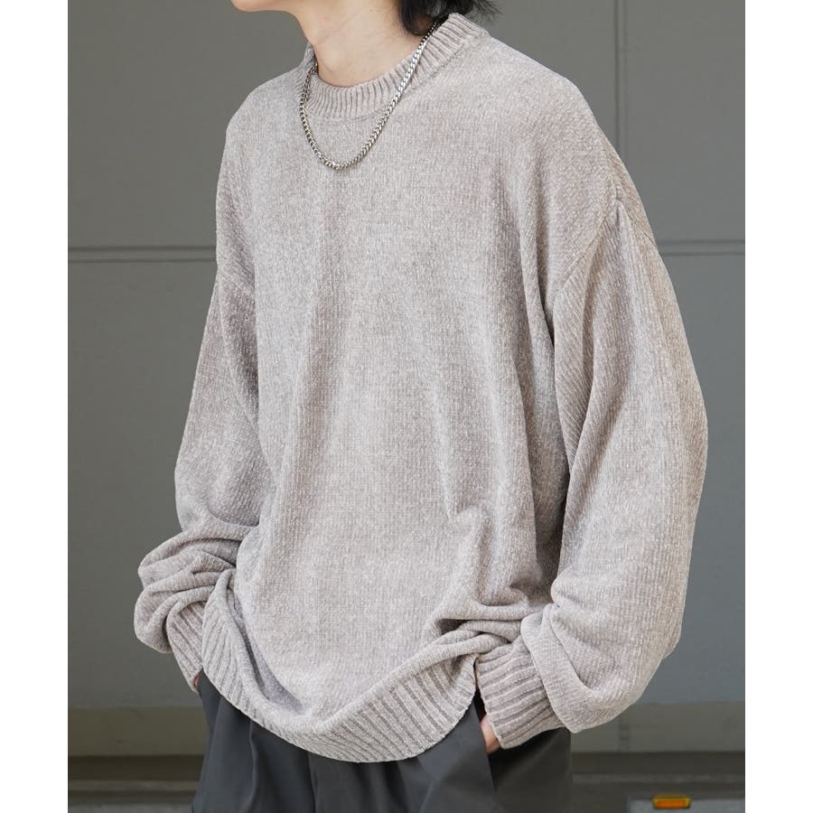 腕部分のデザインが「Loose Hi-neck KNIT」と異なり袖幅から袖リブ幅にかけて幅を狭め、ビッグシルエットが表現できるようなハリ感も残したため、手首付近に生地が溜まり程よいボリューム感を演出するデザインに。