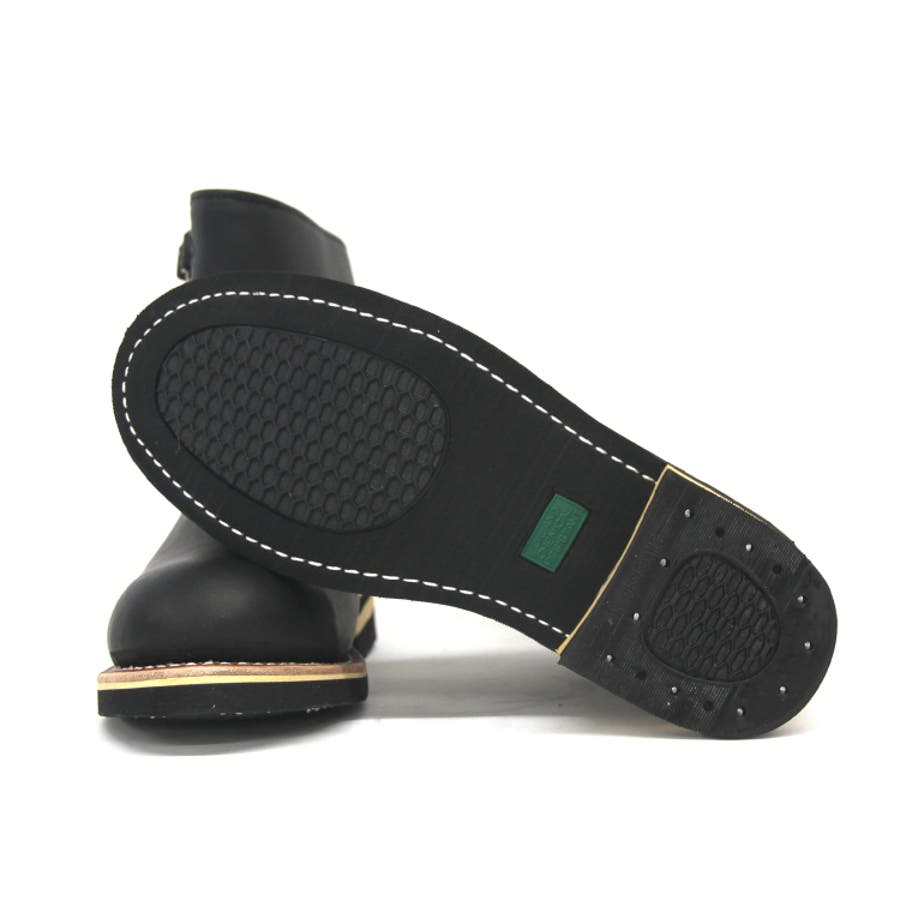 | 素材 | アッパー素材:合成皮革(筒部・踵部位)/本革(つま先~甲部分・ベルト部分) つま先スチール(鉄板)入り 底素材:合成底(グッドイヤーウェルト製法) サイドジップ:無し サイズ(CM):23~30cm ヒール高 約5cm レングス 約16.5cm カラー:ブラック サイドジップ:無し |