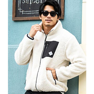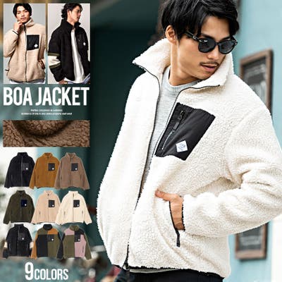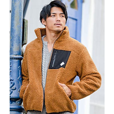 モコモコとした手触りの暖かなボア素材で温もりを与えてくれるスタンド襟のジャケット。