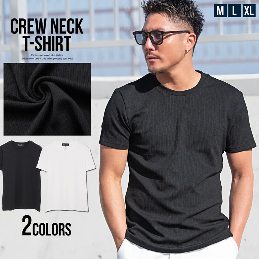 凹凸のあるストライプ柄を表面にほどこした生地感のクルーネック半袖Tシャツ。