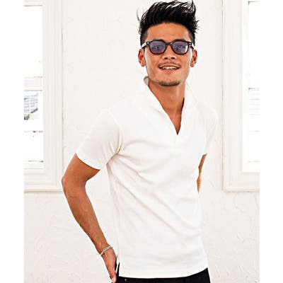 自在にスタイリング可能なワイヤーカラー仕様のキレイめなスキッパータイプの半袖ポロシャツ。