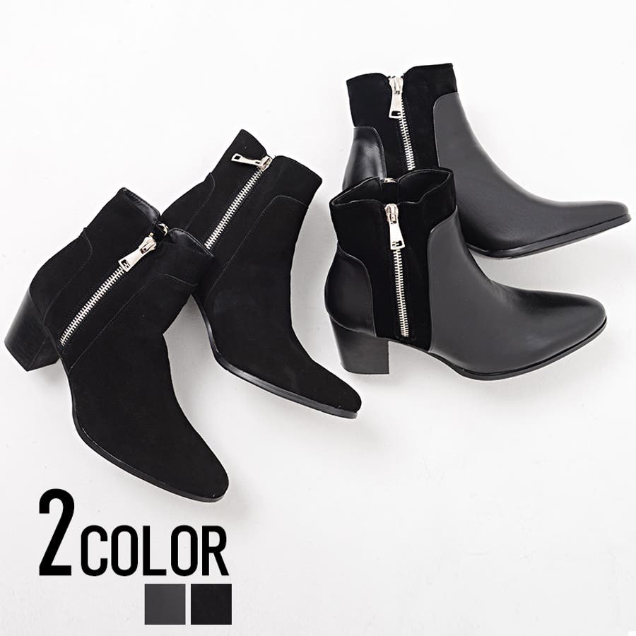 両サイドにアクセントのジップを入れることで楽に着脱ができ、デザイン性だけでなく 実用性にも優れた一足。