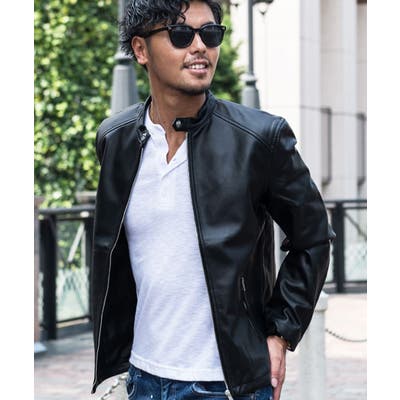 これからの季節に重宝すること間違いなしのPUレザーシングルライダースジャケット。