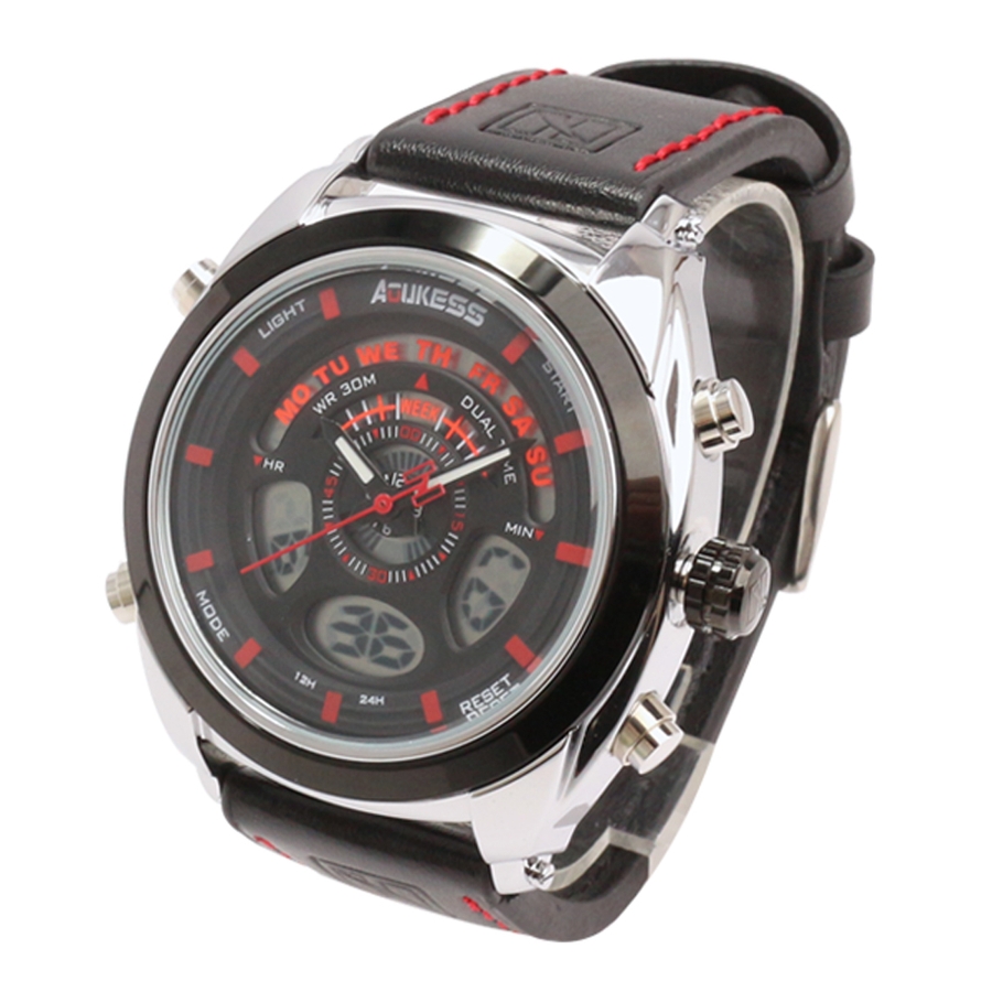 ■規格→アナデジクォーツ(電池式)、月・日付・曜日カレンダー、クロノグラフ、バックライト、アラーム、時報、日常生活防水(3気圧防水)※ダイバーズウォッチではございません。