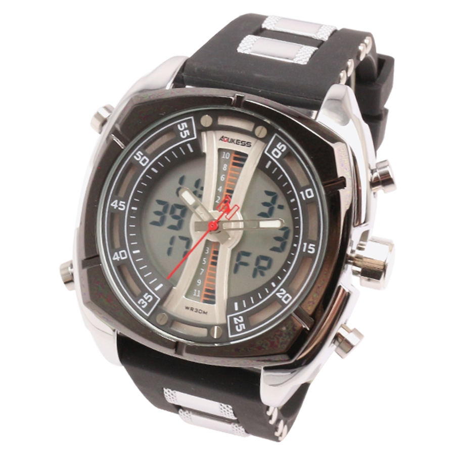 ■規格→アナデジクォーツ(電池式)、月・日付・曜日カレンダー、クロノグラフ、バックライト、アラーム、時報、日常生活防水(3気圧防水)※ダイバーズウォッチではございません。