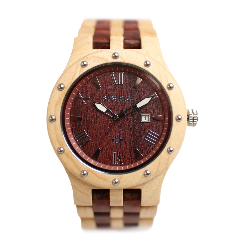 ■素材→天然木(楓、紅檀)、ミネラルガラス、ステンレススティール、日本製シチズンMIYOTAムーブメント(2115)