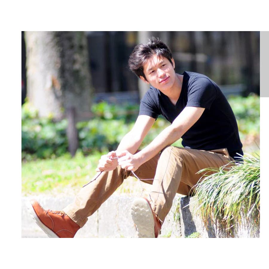 ボトムスはキレイめなら細身のチノパンツやカーゴパンツ、 カジュアルに魅せるならデニムがオススメですっ!