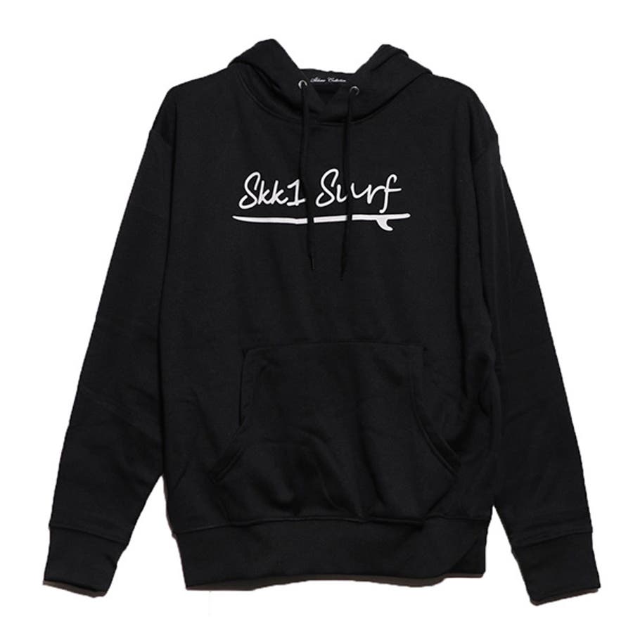 着回しのしやすい裏起毛サーフロゴパーカー。