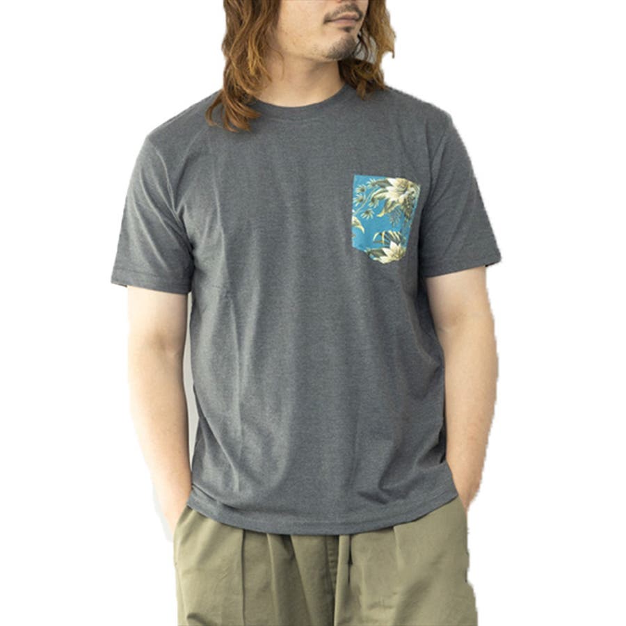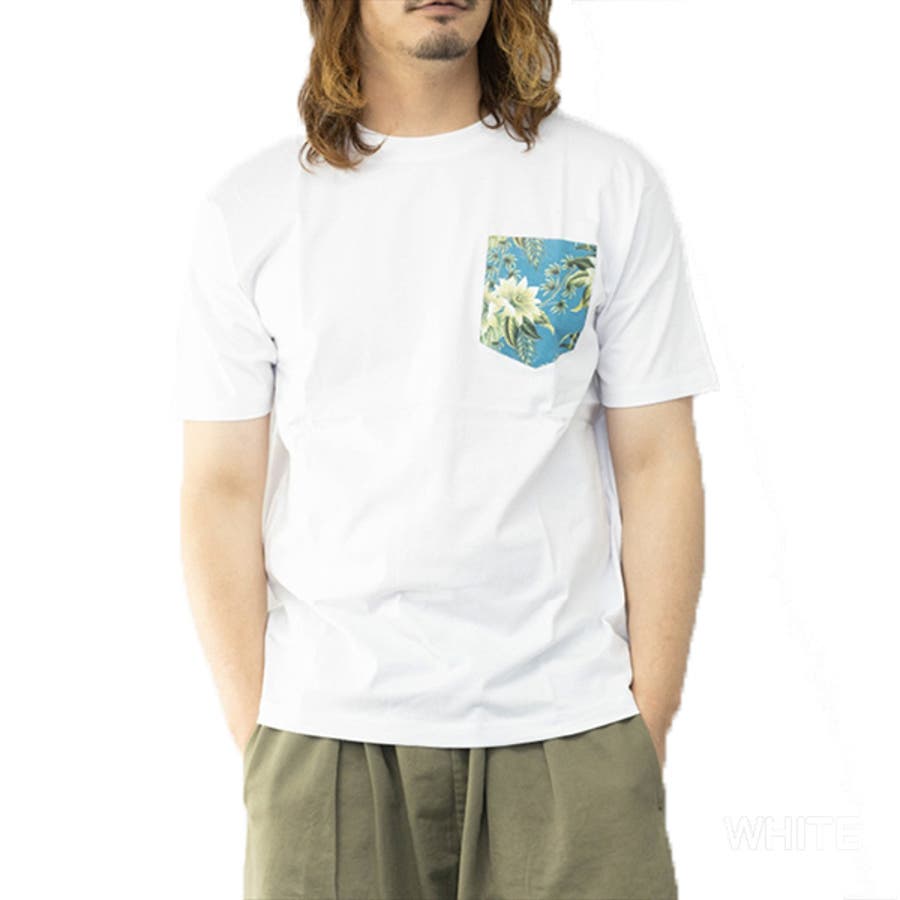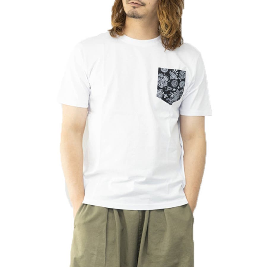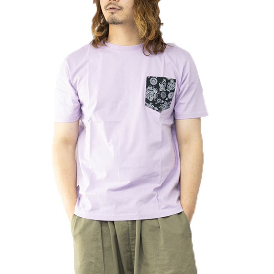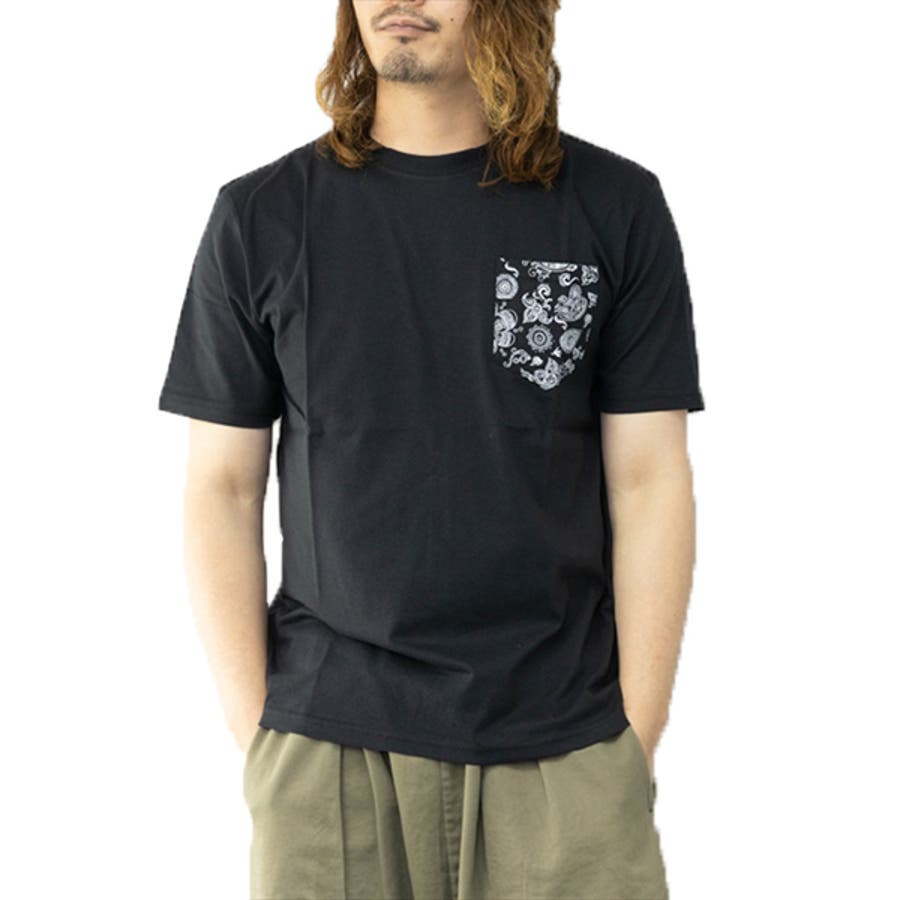 柄ポケットがポイントのクルーネックTシャツ。