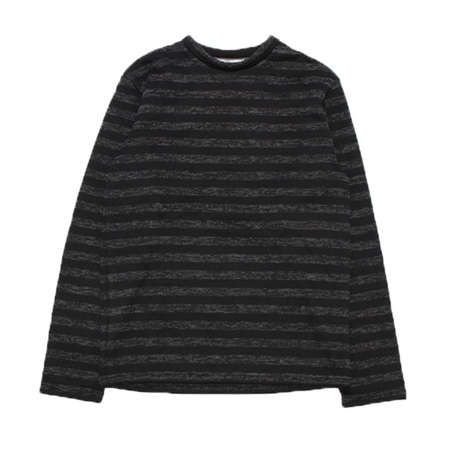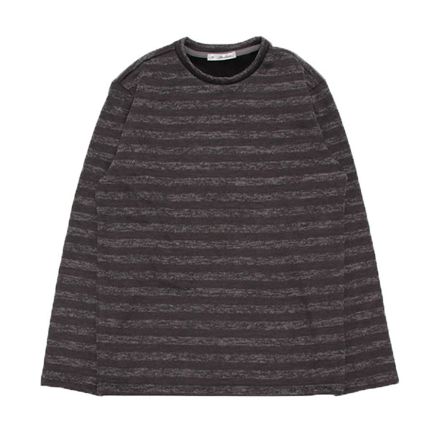 裏ベロアが魅力のボーダー柄クルーネックニットトレーナー。