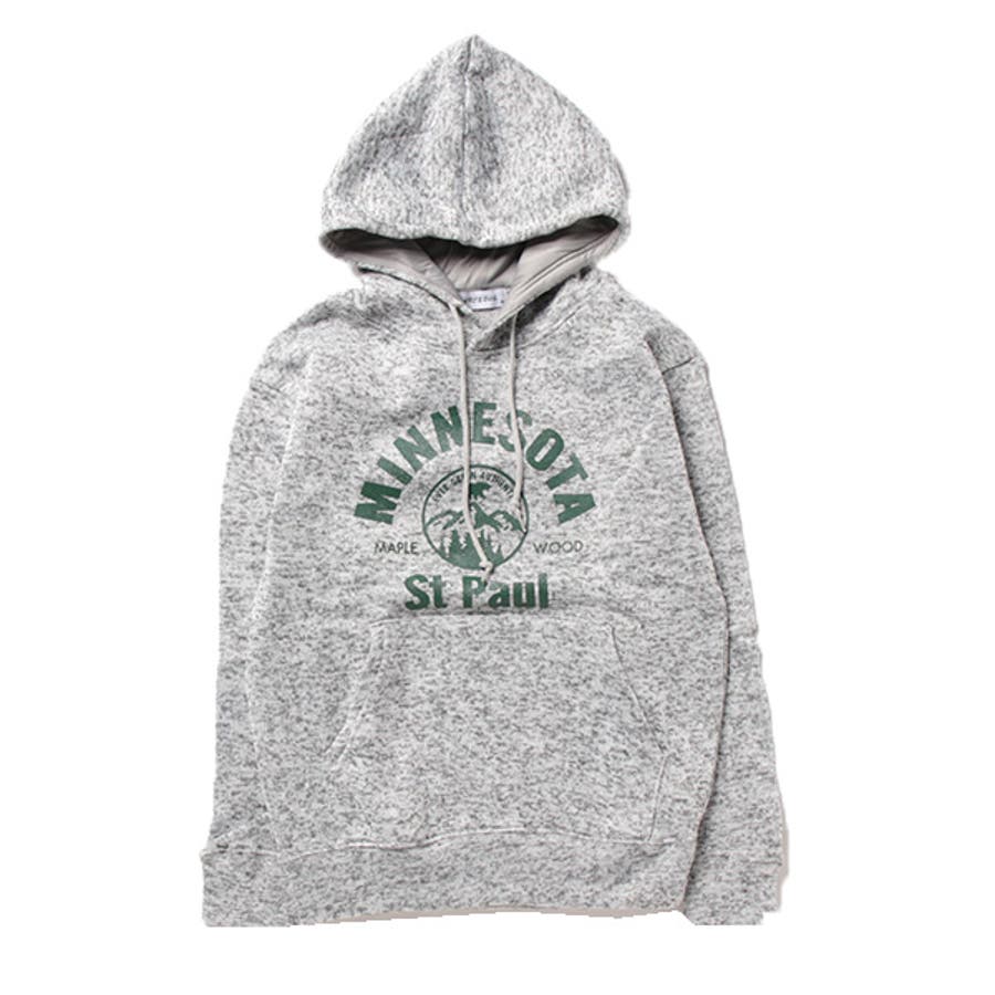 暖かな着心地のニットフリース裏起毛プリントパーカー。
