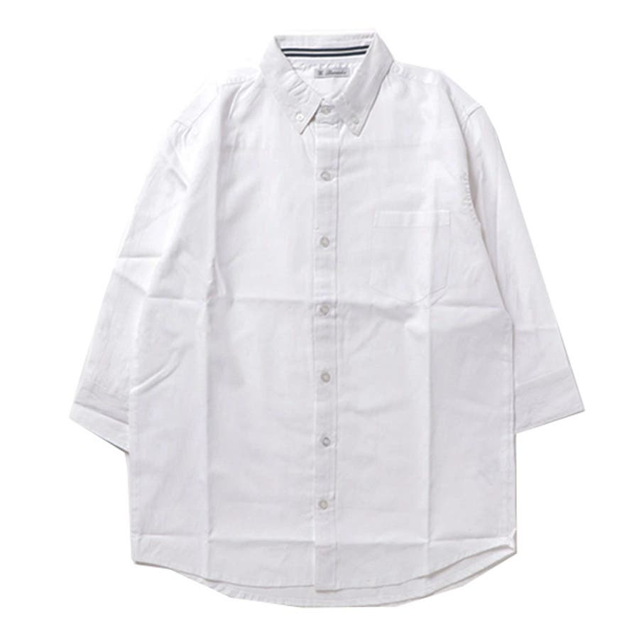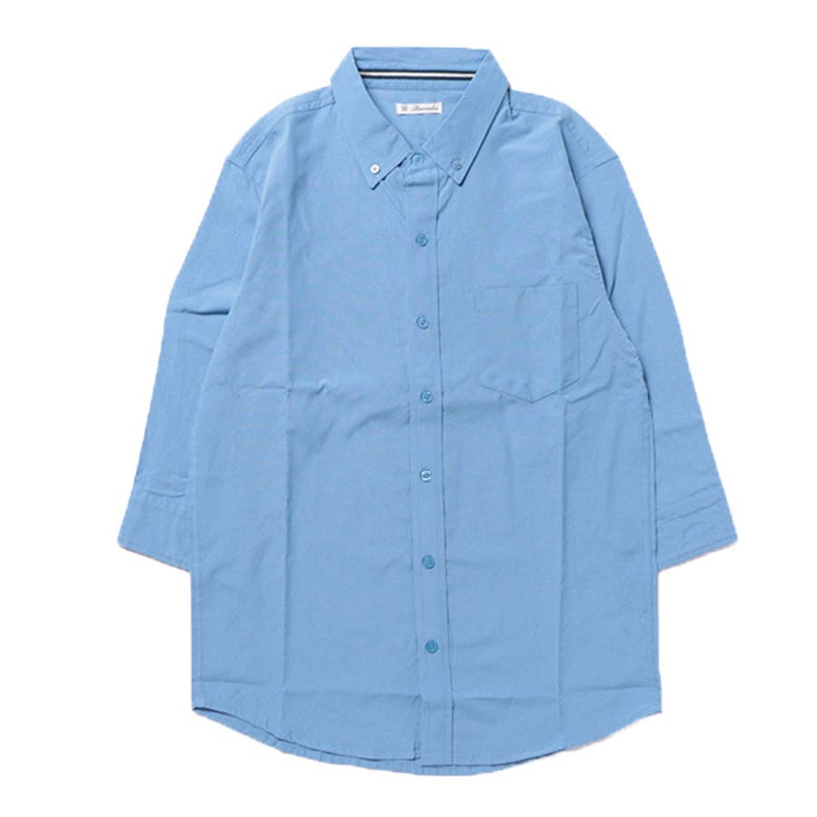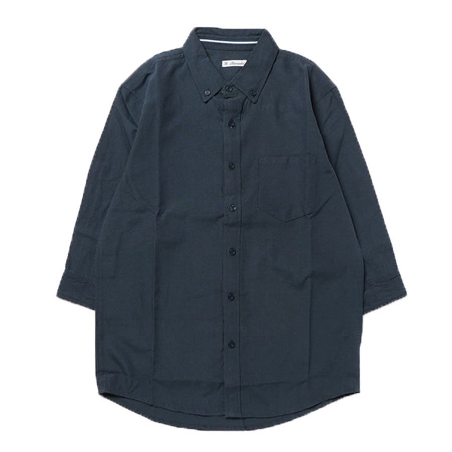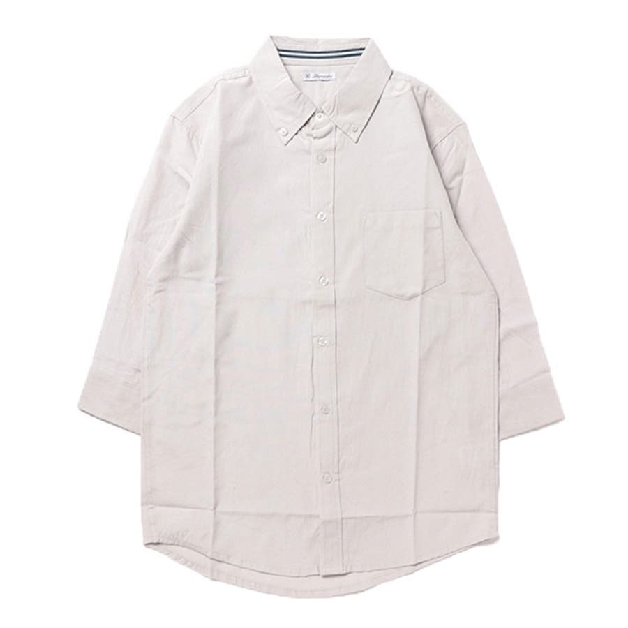 定番デザインで使い勝手のいいボタンダウン7分袖シャツ。