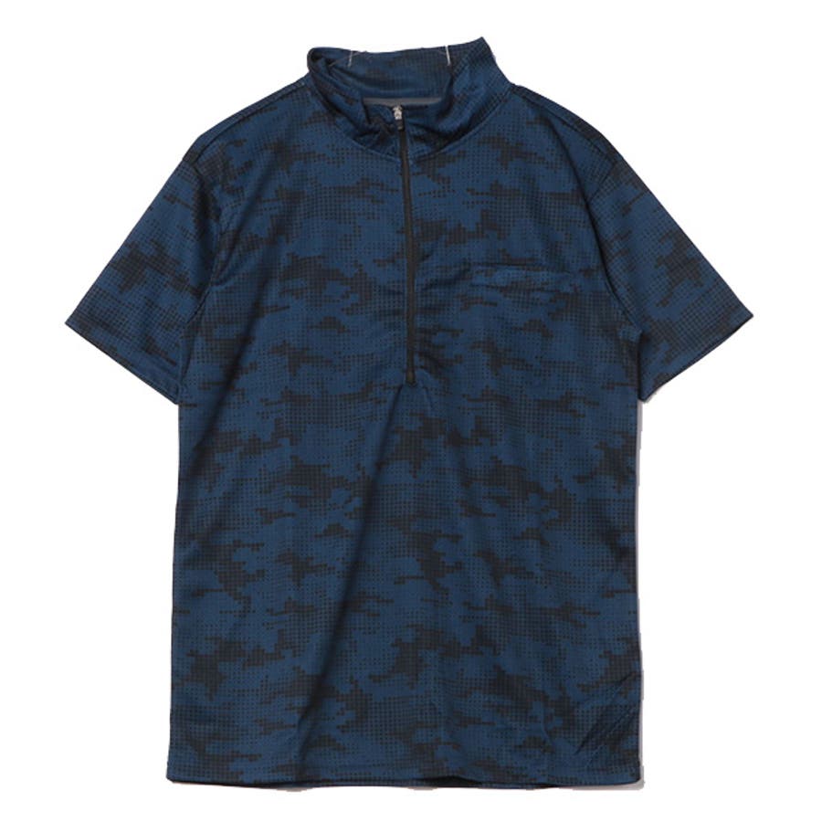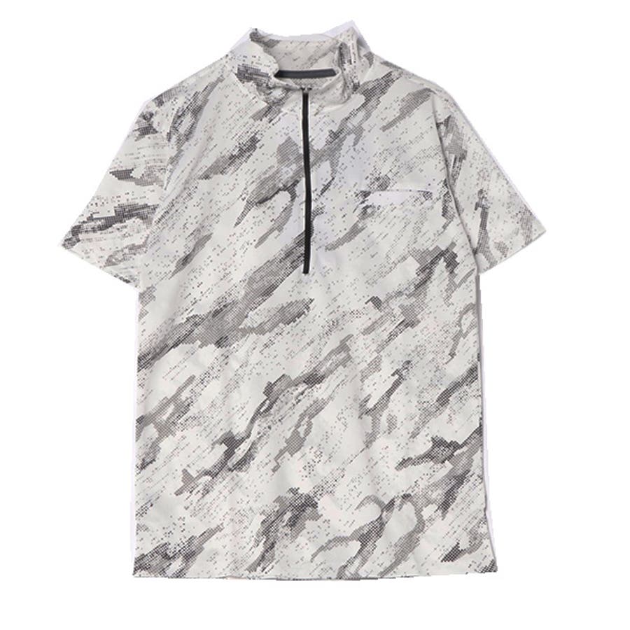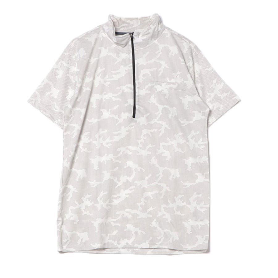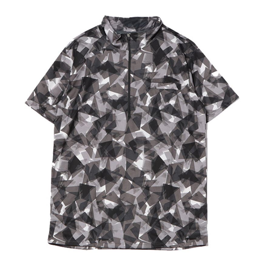 ドライな着心地が魅力の総柄ハーフジップTシャツ。