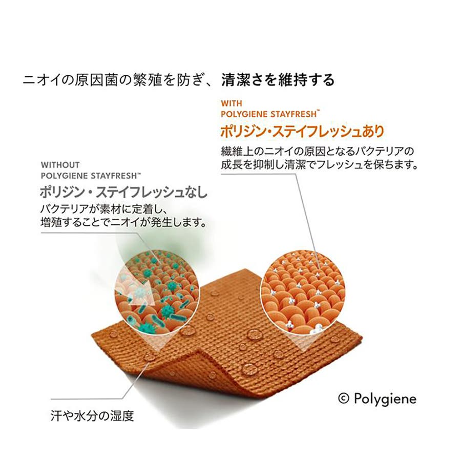 ②汗をニオイにしない抗菌防臭加工「ポリジン」を採用。気になる足のニオイを軽減します。
