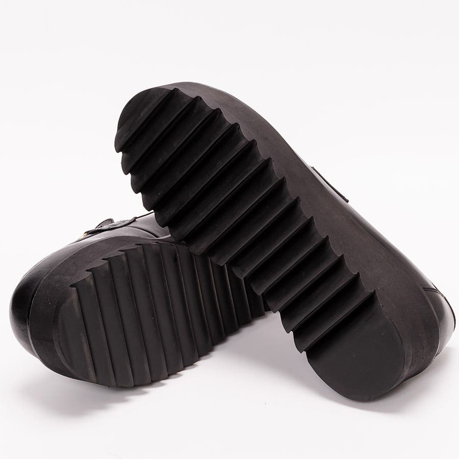 厚底の軽量ソール仕様で、見た目の重厚感とは違い、履き心地は軽快。