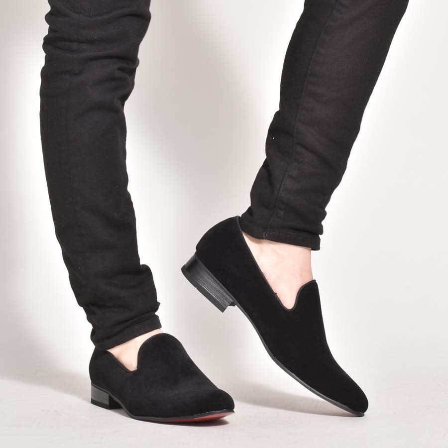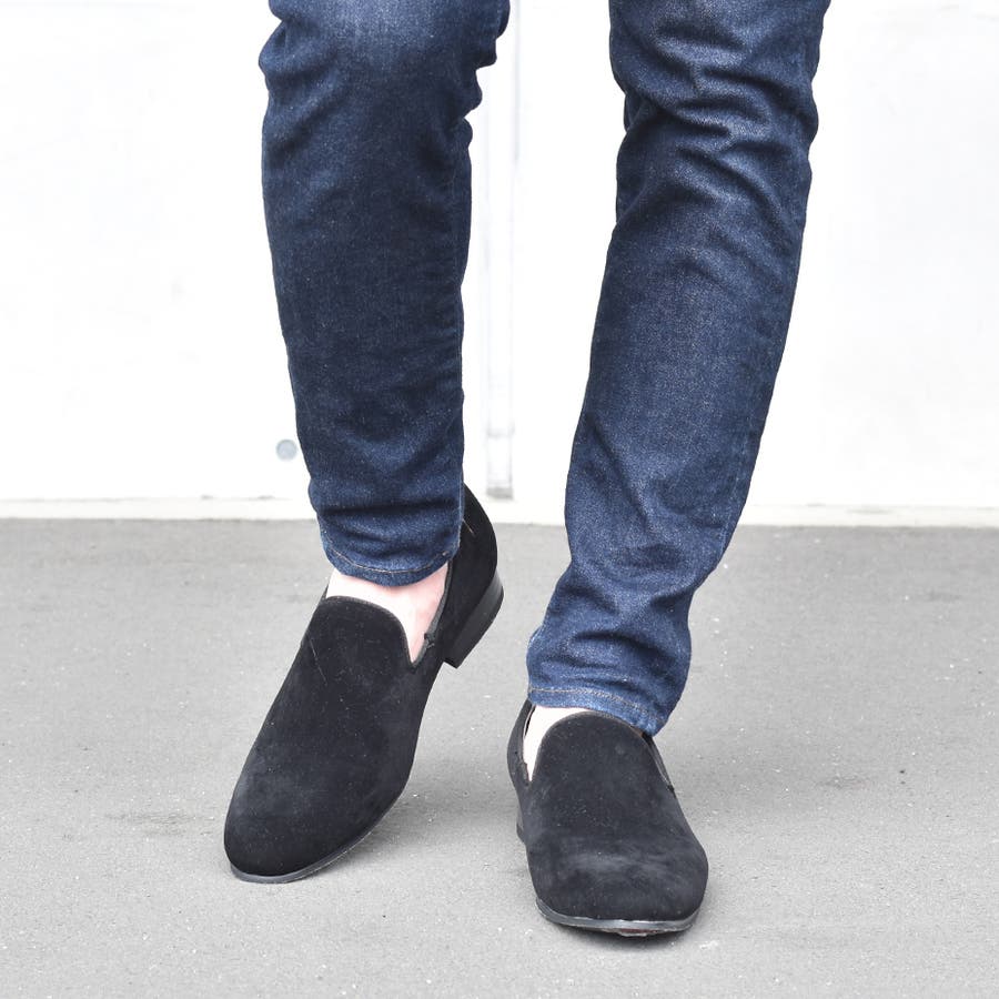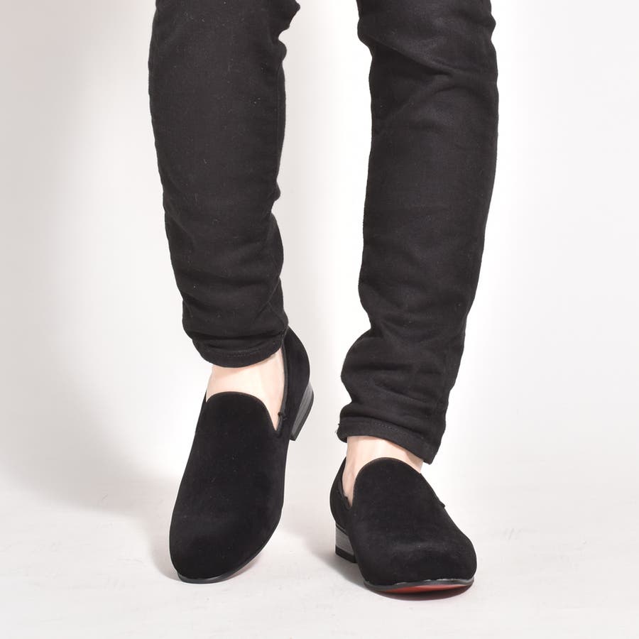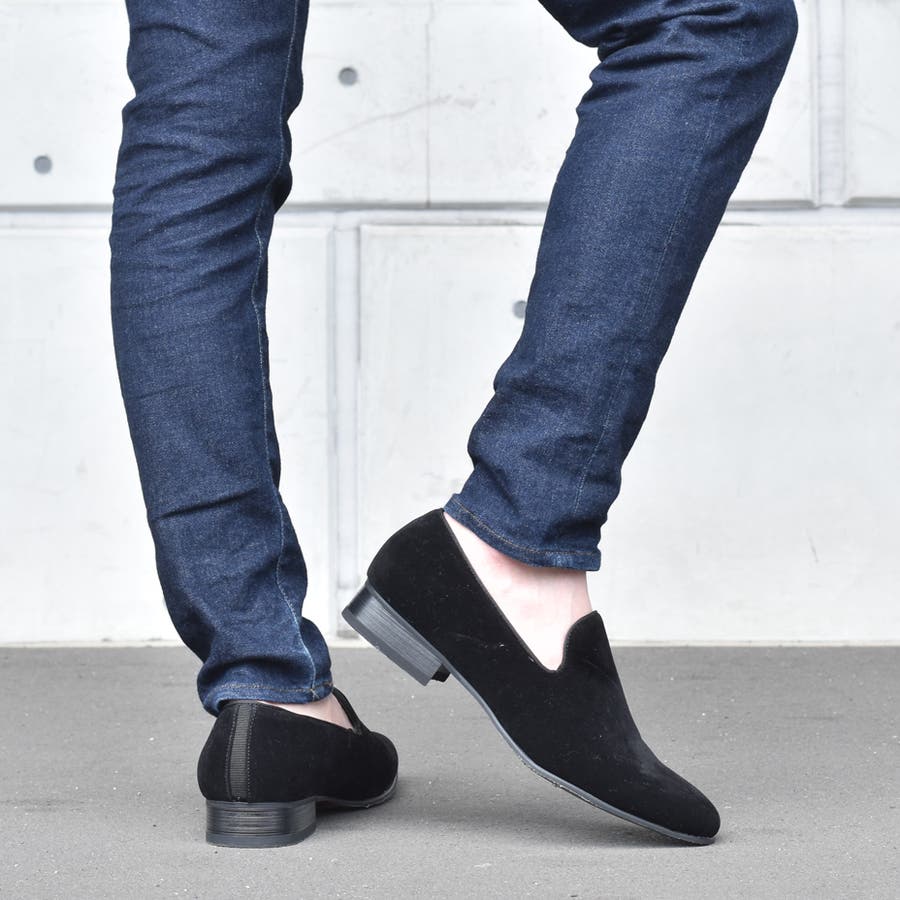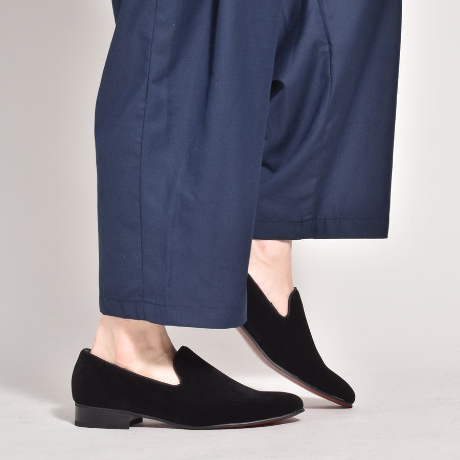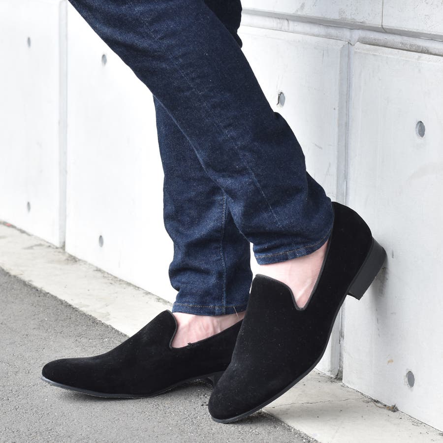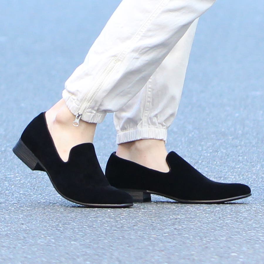 ベルベットのような高級感のあるフェイクスエードが足元を知的に演出してます。