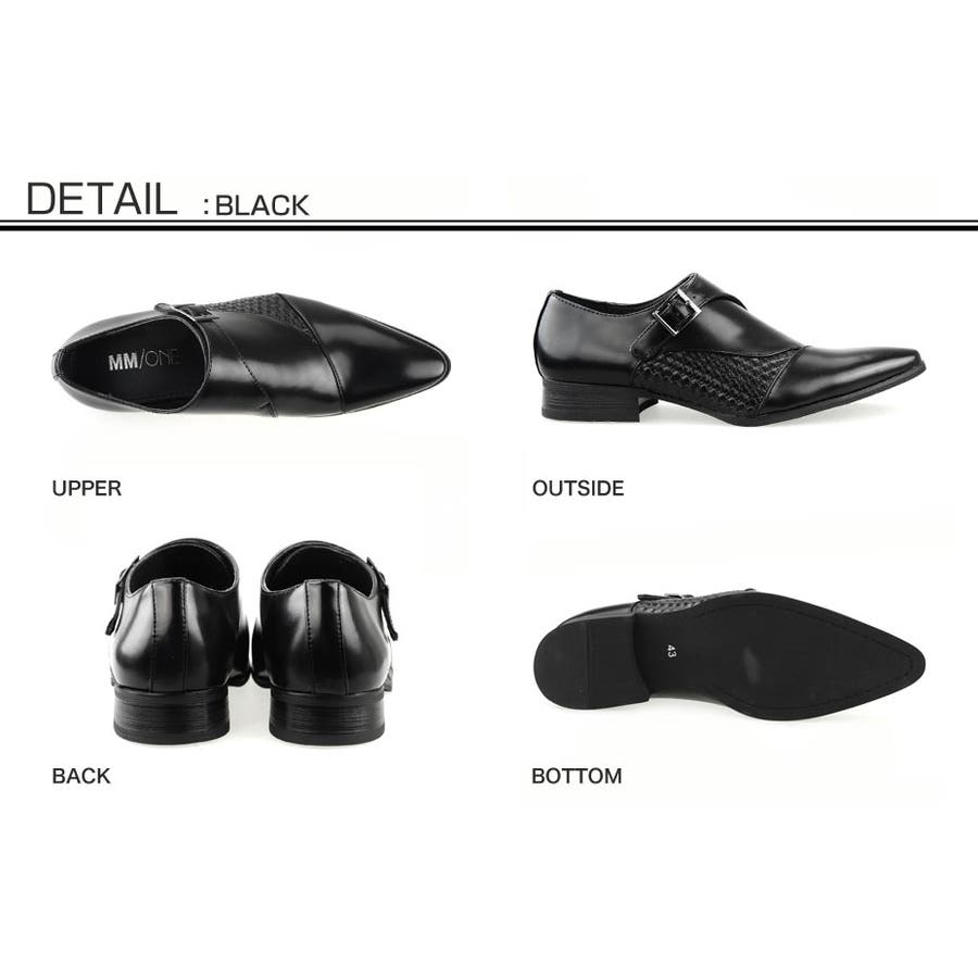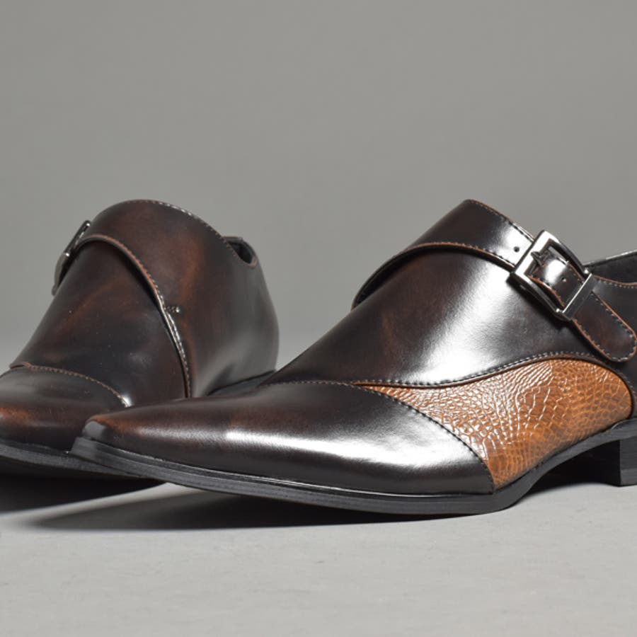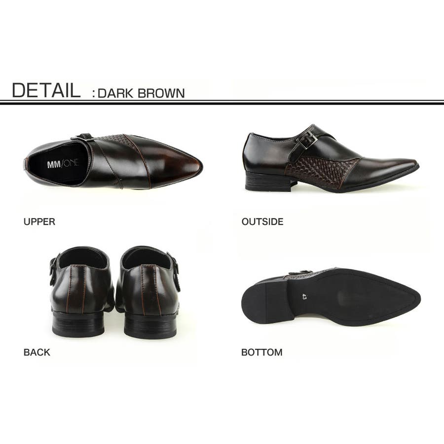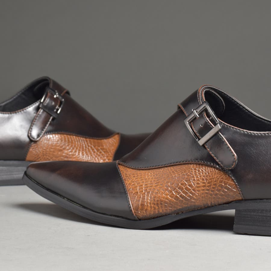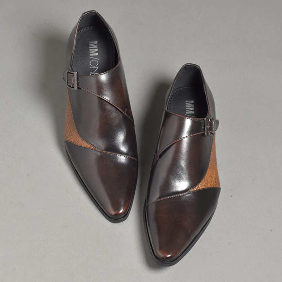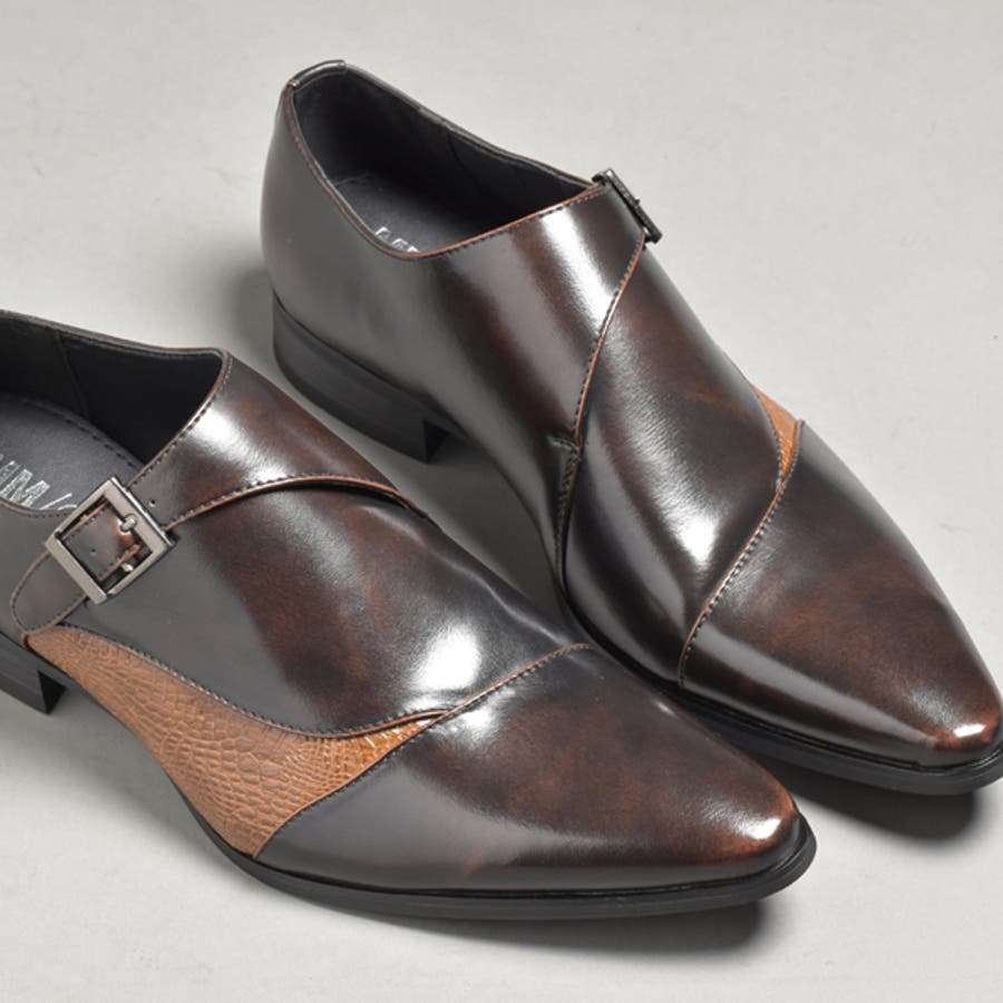 ポインテッドトゥ モンクストラップ ドレスシューズ / スリッポン コンビ素材