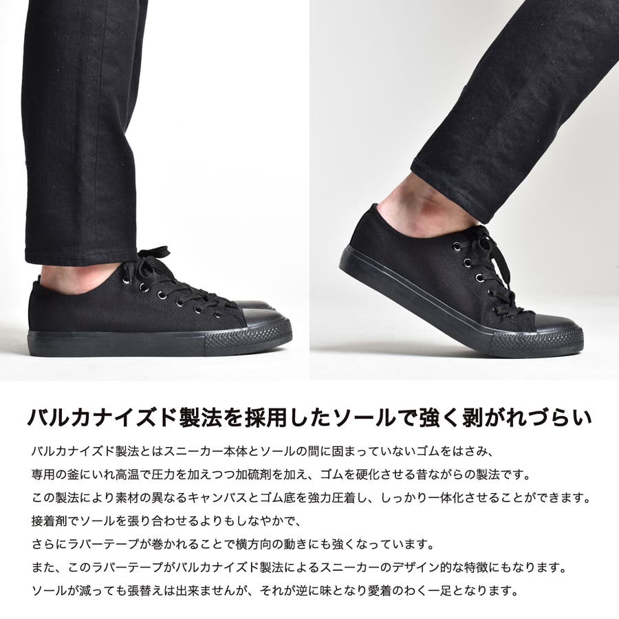 バルカナイズド製法でキャンバスとゴム底を強力圧着しているのでがれにくいソールになっています。