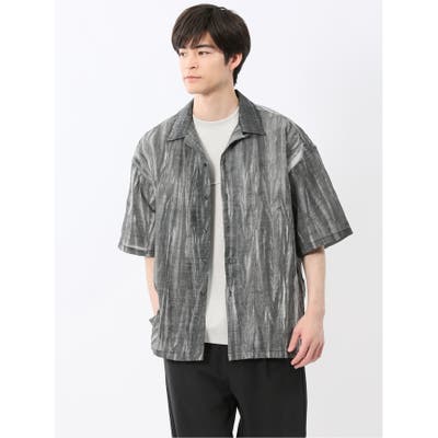 着映え度抜群、一枚で様になるオープンカラーの半袖シャツです。立体感のあるワッシャー加工とかすり染めのようなプリント柄で、夏らしい季節感を表現しています。裾部分はスリット入りのストレートです。