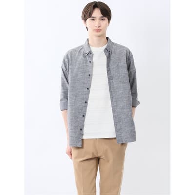 涼しげな印象に仕上げた、ボタンダウンの7分袖シャツです。前立てのパイピングと、衿腰内側・カフス裏の別生地がアクセントになっています。キチンと見えするので、プライベートやオフィスカジュアルにオンオフ兼用で大活躍してくれます。
