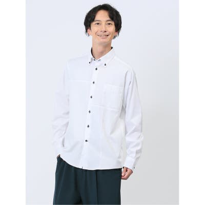 綺麗目なルックスに仕上げた、ボタンダウンの長袖シャツです。異素材で切り替えたクレイジーパターン(白は同色、黒は配色)がポイント。キチンと感があるので、プライベートからオフィスカジュアルまでオンオフ兼用で大活躍してくれます。