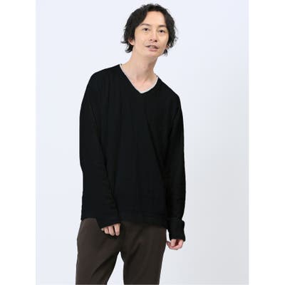トップスを二枚重ね着したように見える、Vネックの長袖Tシャツです。衿部分のフェイクレイヤードで高見えするルックスに仕上げています。一枚で着るのはもちろん、ジャケットやシャツ、ベストのインナーとしても便利なアイテムです。