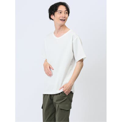 シンプル過ぎない存在感のあるVネックの半袖Tシャツです。無地見えのケーブル柄でナチュラルな雰囲気に仕上げています。一枚で着るのはもちろん、ジャケットやシャツ、ベストのインナーとしても便利なアイテムです。