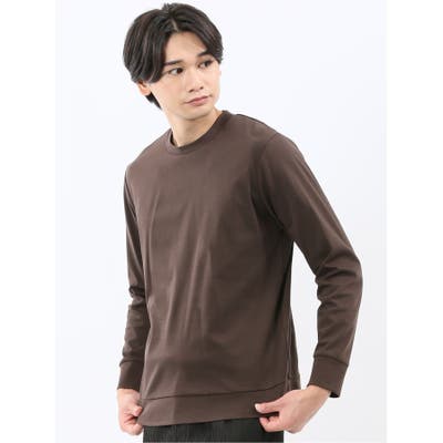 ジャケットの衿が汚れにくい、後ろ衿巾を高くしたスロープネックの長袖Tシャツです。衿・袖口のリブ切り替えと裾部分の表地切り替えがポイント。綺麗目なインナーアイテムとしてジャケットインに最適な一枚です。プライベートからオフィスカジュアルまでオンオフ兼用で着回しが可能です。