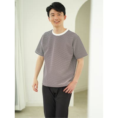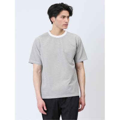リップルマイクロボーダー クルーネック半袖Tシャツ