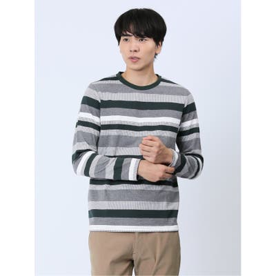 ジャガード 千鳥ボーダー クルーネック長袖Tシャツ