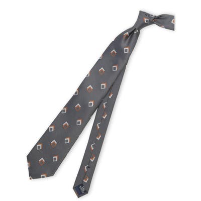 イタリアのアーカイブよりリプロしたジオメトリックの飛び柄です。影を付けることで独特の立体感を表現しています。春夏らしい素材感のあるネイビーやグレー系のジャケットと相性抜群。オンスタイルはもちろんプライベートのタイドアップスタイルにも大活躍してくれます。