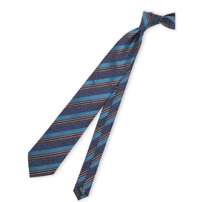 しっかりとした厚みと上品な光沢感のあるシルク生地を使用しています。紺経てによる鮮やかな発色と奥行きのある表情、ハンドメイド加工による柔らかい絞め心地が特徴です。