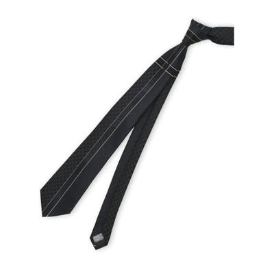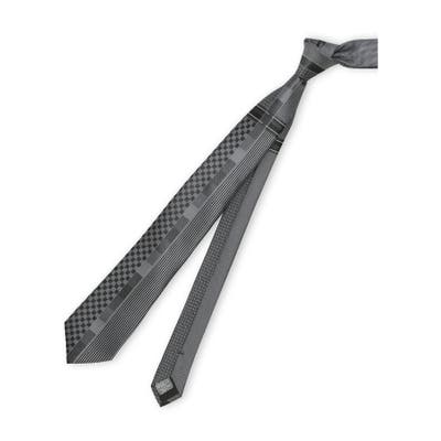 ドレッシーな雰囲気が漂う四面のパネルタイです。ストライプ・市松模様・ドット・無地柄を組み合わせたデザインがセンスの光る衿元を演出します。オンスタイルのタイドアップから普段使いの綺麗目コーディネートまで、オンオフ兼用で活躍してくれます。