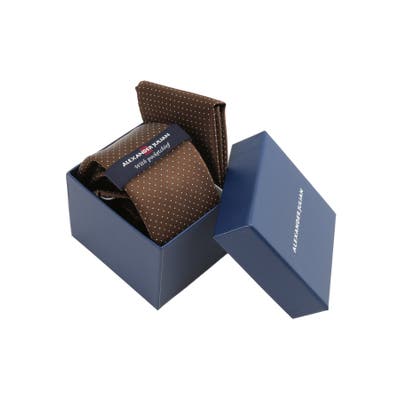 ギフトケースに入ったネクタイ&ポケットチーフセットです。クラシックなピンドット柄が洗練された大人の装いを演出します。主張しすぎない落ち着いた色味が誠実さや信頼感を与えてくれます。パッケージケースにもこだわったデザインなので、大切な方の誕生日や記念日のプレゼントとしてもおすすめです。